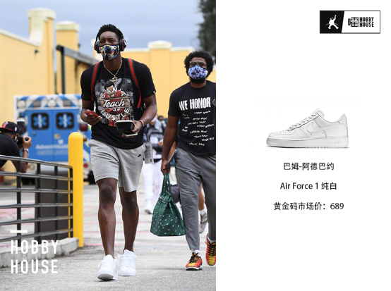 今天热火和雄鹿迎来季后赛第二轮的首场较量,热火中锋阿德巴约拿到12分的同时抢到17个篮板,是球队拔得头筹的重要保障。阿德巴约简单的上身这件T恤,除了项链外没有过多点缀,左手拿着盒饭,右手拿手机,Gucci 背包的红绿色肩带倒是起到了很好的点缀效果,搭配下身针织灰色运动裤,十分清凉。上脚百搭的 Air Force 1 小白鞋,纯白装扮的鞋身,可以满足你的任何穿搭需要,而且一年四季都可以穿,绝对是男生女生鞋柜里的必备鞋款。