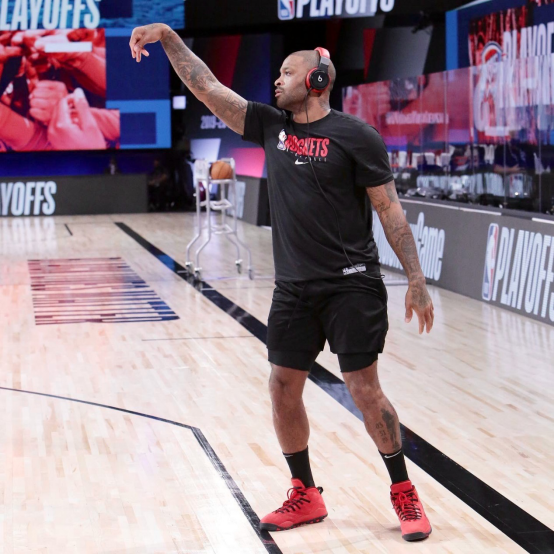 赛前训练,塔克又上脚了 Steve Wiebe x Air Jordan 10 联名配色,这双鞋是加拿大纹身艺术家 Steve Wiebe 同 Jordan Brand 展开合作推出,选用醒目艳丽的大红装扮为主基调,辅以黑色点缀细节,鞋身搭配独特的爆裂纹路呈现,营造出精致非凡的视觉体验!而更为精彩的是,该鞋款的鞋垫印制图案别有一番特色,体现出了纹身艺术家的独特审美。鞋款仅在2018年2月14日情人节指定店铺发售了230双。