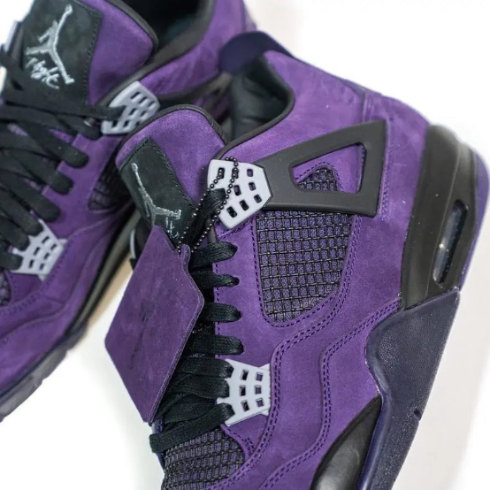 上脚的这双 Air Jordan 4 是跟特拉维斯-斯科特的全新联名,鞋款依旧是亲友限定。这双鞋以 Air Jordan 4 为蓝本打造,鞋面整体以紫色示人,中底黑色,后跟的标志性 Nike Logo 以红色呈现,同样搭配有皮质吊牌,延续了前作的设计手法。不过此次的身份更为特殊,亲友限定,数量更少。这双来自紫罗兰的诱惑,你感受到了吗?