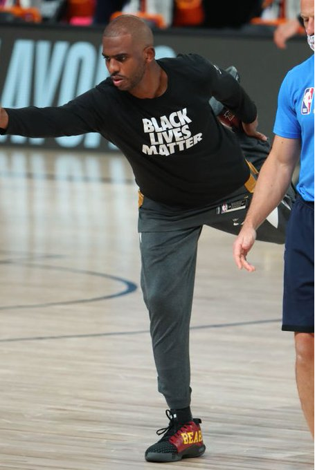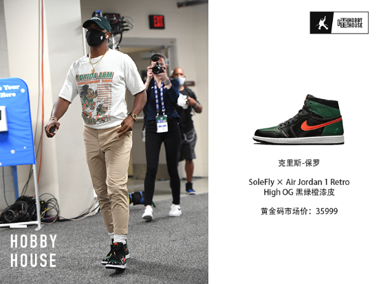复赛后,保罗每场比赛都会上脚一双大学配色的球鞋,来支持黑人大学和学院。或许保罗认为自己的季后赛“时日无多”,于是今天便代表两所大学发声。赛前,保罗戴着象征佛罗里达农工大学的棒球帽,上身印有米老鼠图案的佛罗里达农工大学白色T恤,搭配卡其色休闲长裤。上脚的这双 SoleFly × Air Jordan 1 联名价值三万多 RMB ,全球限量223双。鞋款采用黑色搭配墨绿色的漆皮打造鞋身,鞋身内外两侧的 Swoosh 以橙绿鸳鸯配色呈现,最后搭载白色中底和黑色大底,十分炫酷。