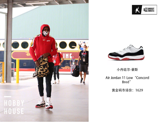 出战30分钟,小豪斯拿到12分,算是球队表现最好的替补球员。赛前小豪斯上身一件红色套头卫衣,搭配黑白相间的口罩,下身穿着黑色紧身训练裤,形成强烈的视觉冲击。一件 Bape 经典的迷彩背包不仅能将大部分物品收纳其中,还能够解放双手,包包下面挂着一双小的倒钩球鞋玩偶,细节处非常用心。上脚 Air Jordan 11 低帮黑红康扣,鞋款整体设计细节均源自元年鞋款,并结合大学红配色呈现出全新外观,搭载半透明外底和碳纤维板,上脚舒适的同时,呼应小豪斯身上装扮。