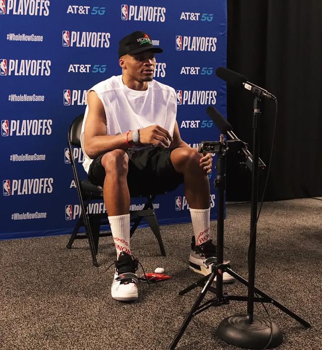 威少接受采访时上脚: