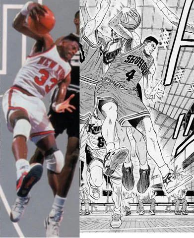 在湘北的对手中也有大量参照。神奈川县的传奇人物海南明星球员牧绅一,无论是风格还是魅力,他都可以与湖人队的超级明星魔术师约翰逊媲美。赤木刚宪最坚强的竞争对手鱼住纯可以很好地体现阿朗佐·莫宁(Alonzo moming)的身姿,而仙道彰则是斯科蒂·皮蓬(Scottie Pippen)处于巅峰时期的那种多才多艺的摇摆人,是全能选手。藤真健司是翔阳的指挥官,他将一张干净的脸和一场整洁的比赛结合在一起:他几乎马上让人想起,约翰·斯托克顿(John Stockton)。