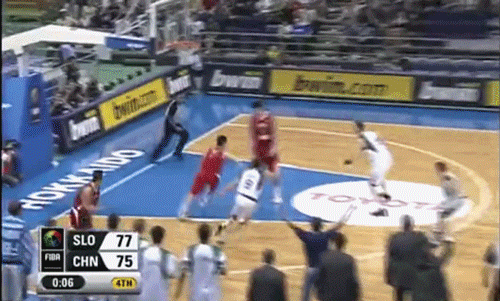 大家仔细看,在王仕鹏面前一共两个防守球员,其中一位跳起封盖,另一位失去平衡、往后退了一步的9号球员就是尤杜里。