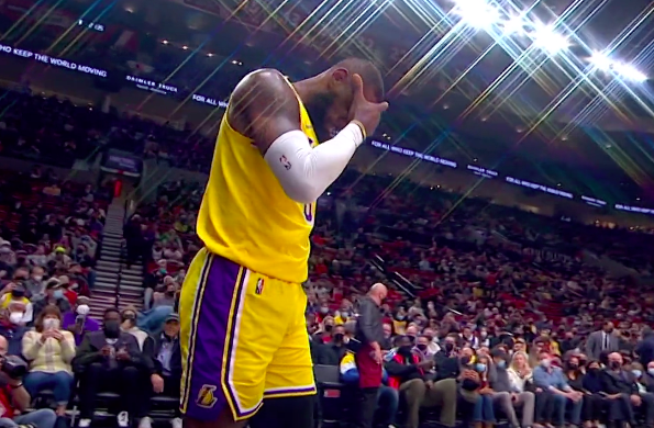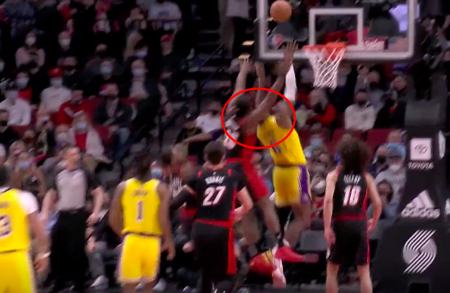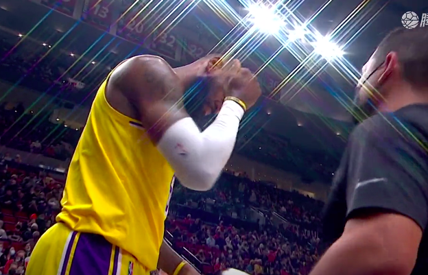 2022-02-10 11:55北京时间2月10日,NBA常规赛湖人对决开拓者。比赛又出现了争议判罚,詹姆斯一次上篮被对手打到了头部,裁判没有任何反应,老詹再度表达了不满。