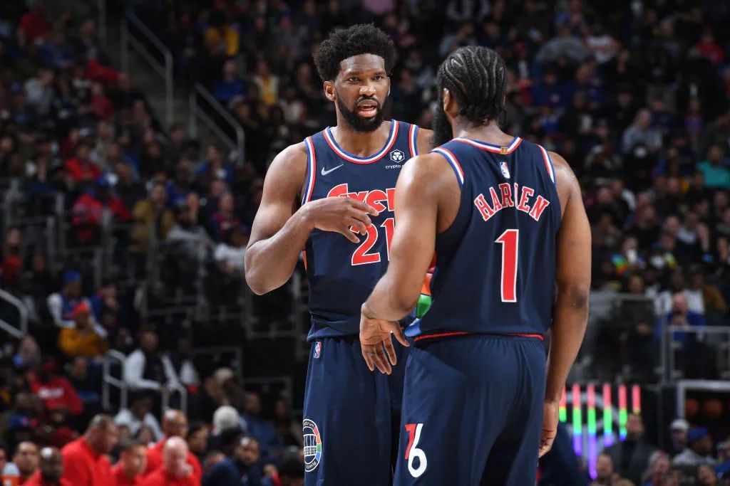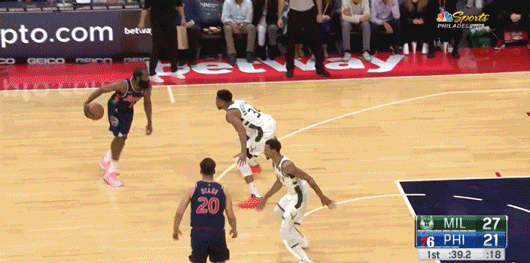 3月30日vs雄鹿,17投9中,三分7中4得到32分5篮板9助攻;4月1日vs活塞,15投4中,三分9中2得到18分9篮板7助攻。哈登来到费城之后,仅有一次30+。
