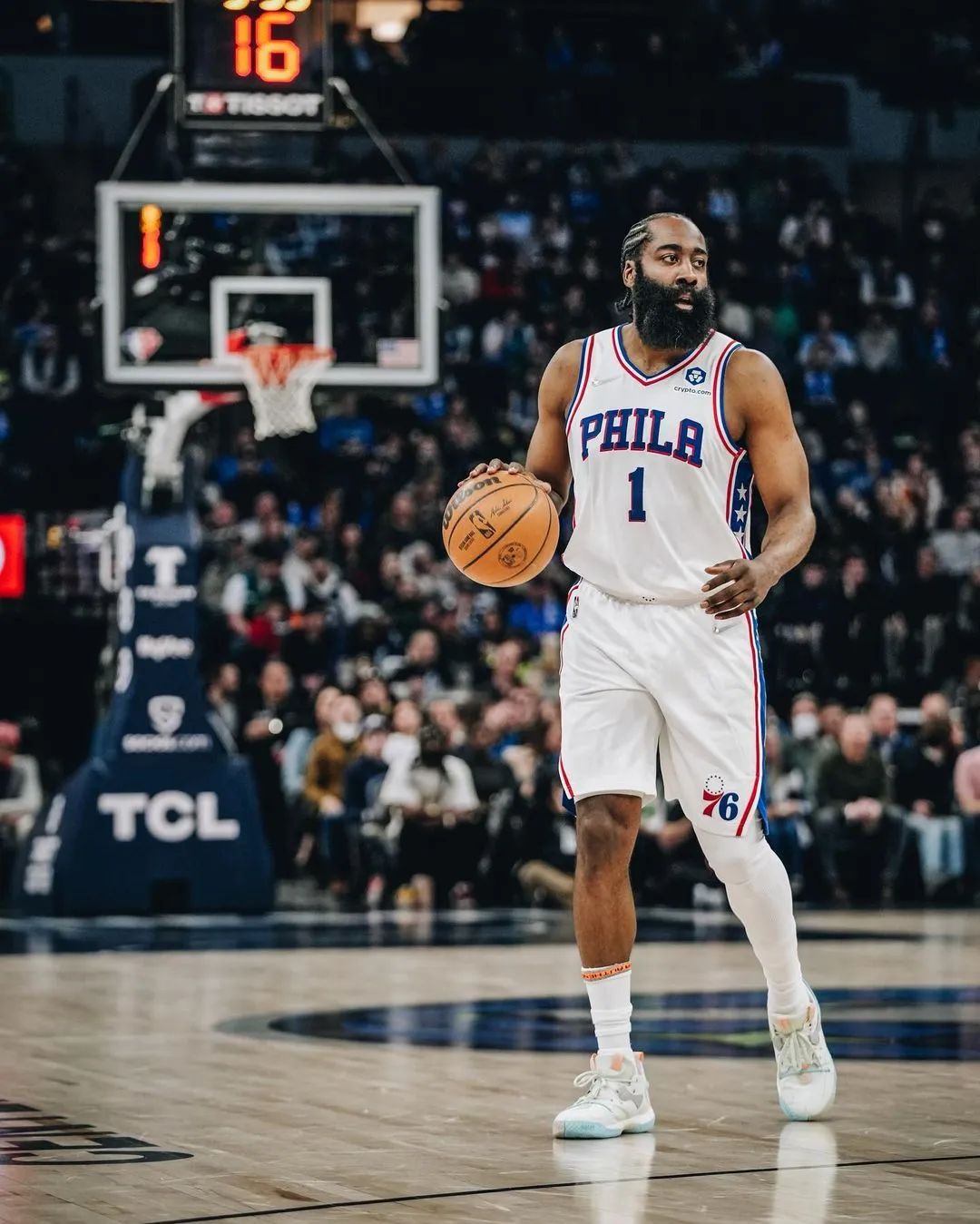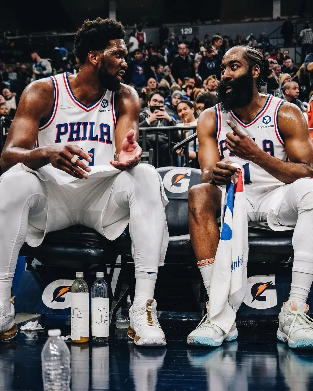 来到费城之后,哈登出战16场比赛,场均得到22.7分7.5篮板9.6助攻1.4抢断0.3盖帽3.2失误,投篮命中率41.3%,三分命中率34.3%,罚球命中率88.6%(场均命中8.8记罚球)。和在篮网时相比,他的三分命中率和罚球命中率略有提升。