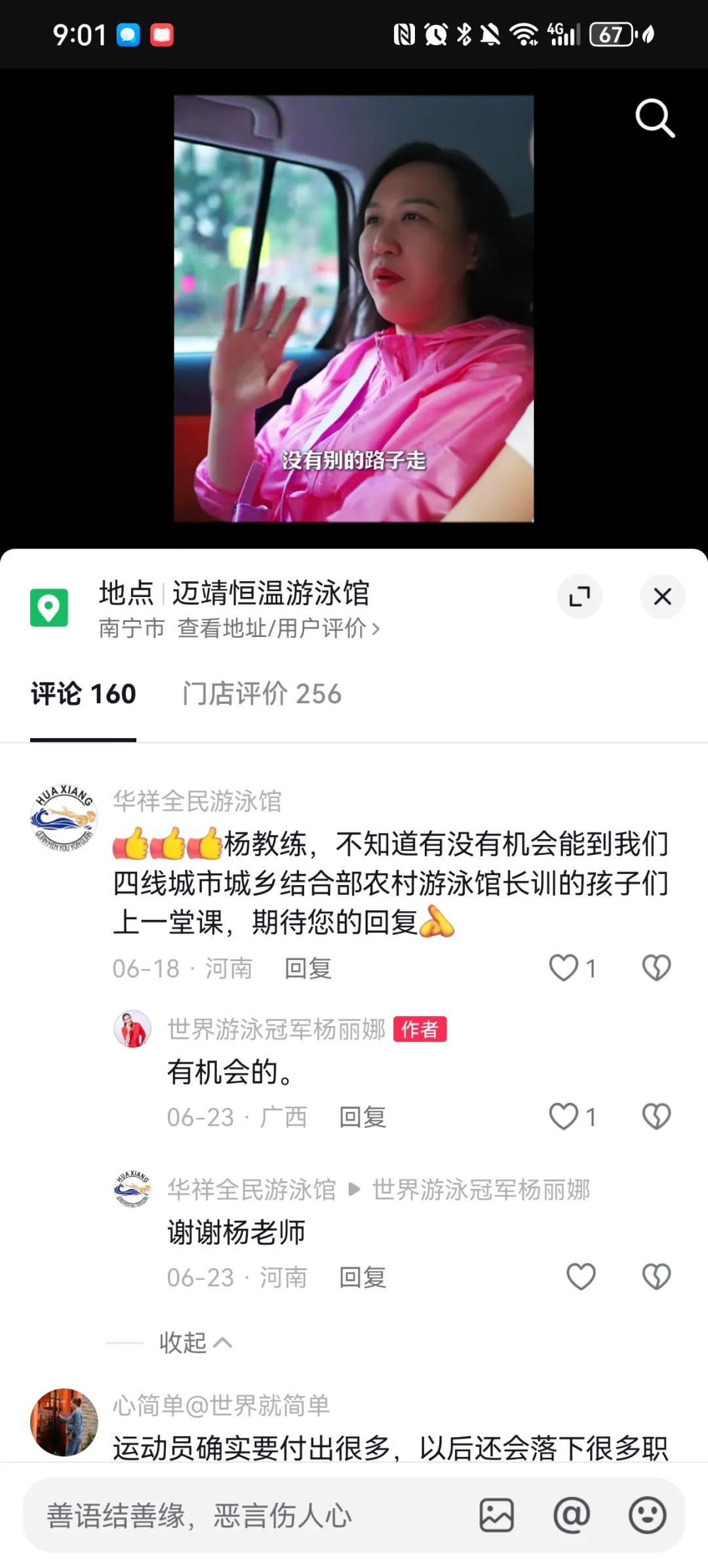 (一位开游泳馆的粉丝邀请杨丽娜去授课)