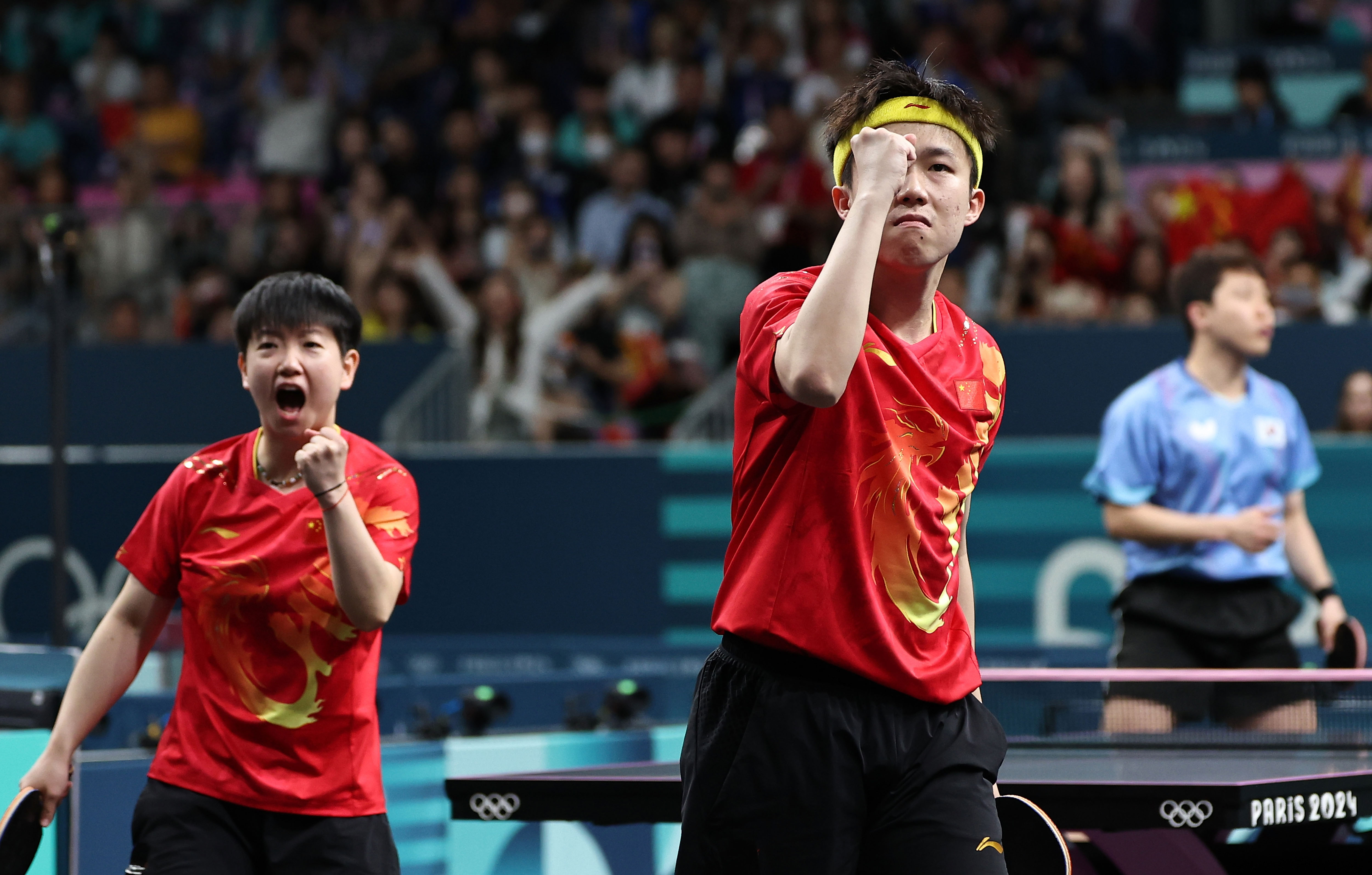 “莎头组合”决赛中的对手是朝鲜组合李正植/金琴英,后者在稍早结束的半决赛中,以4:3艰难战胜中国香港组合黄镇廷/杜凯琹。朝鲜组合堪称本届奥运会乒乓球混双最大的“黑马”,先后淘汰了多对组合闯进决赛,其中包括二号种子日本组合张本智和/早田希娜。