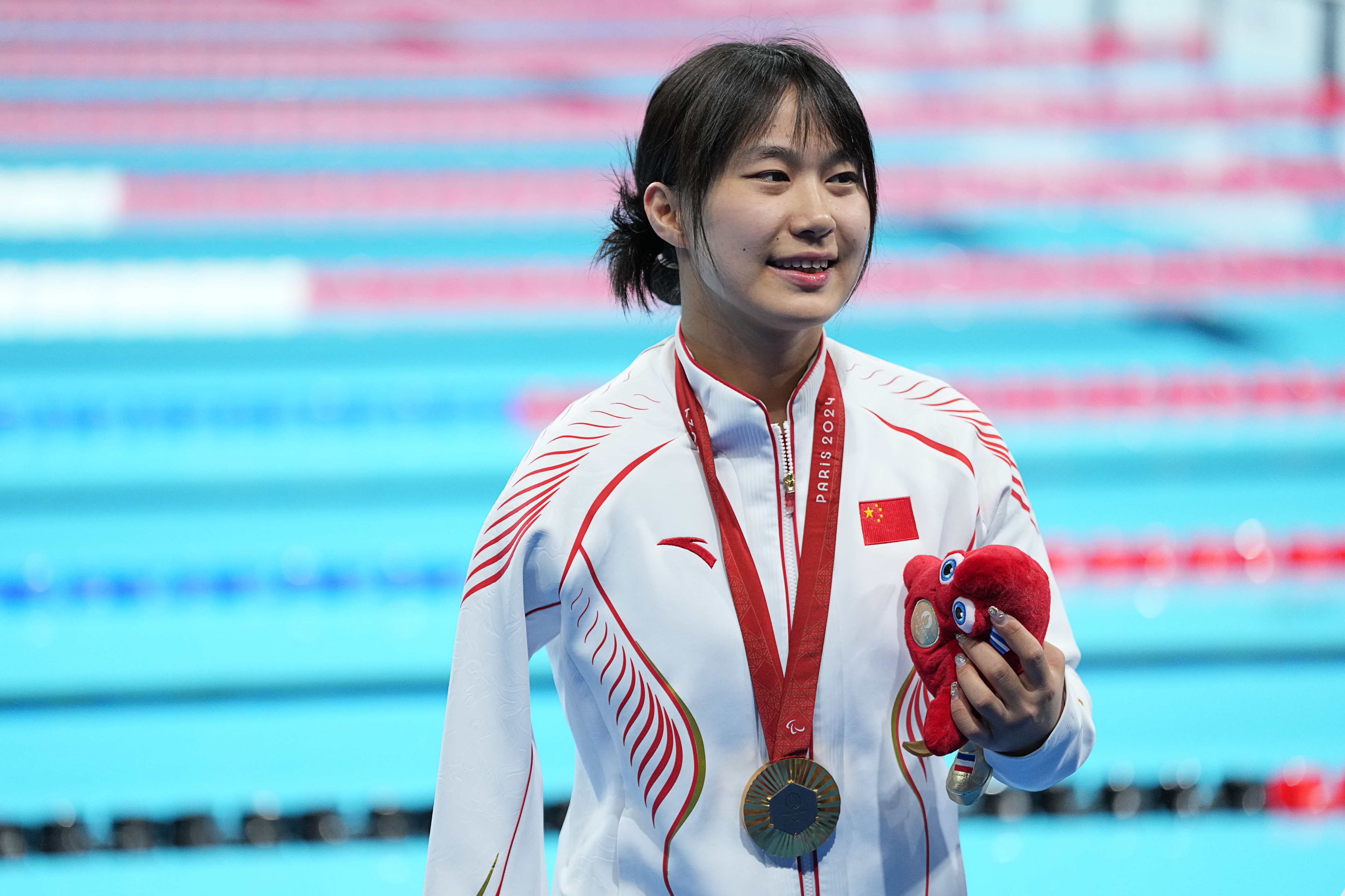 2024-09-07 14:46当日,在巴黎残奥会游泳女子400米自由泳S6级决赛中,中国选手蒋裕燕以5分12秒07的成绩获得冠军。