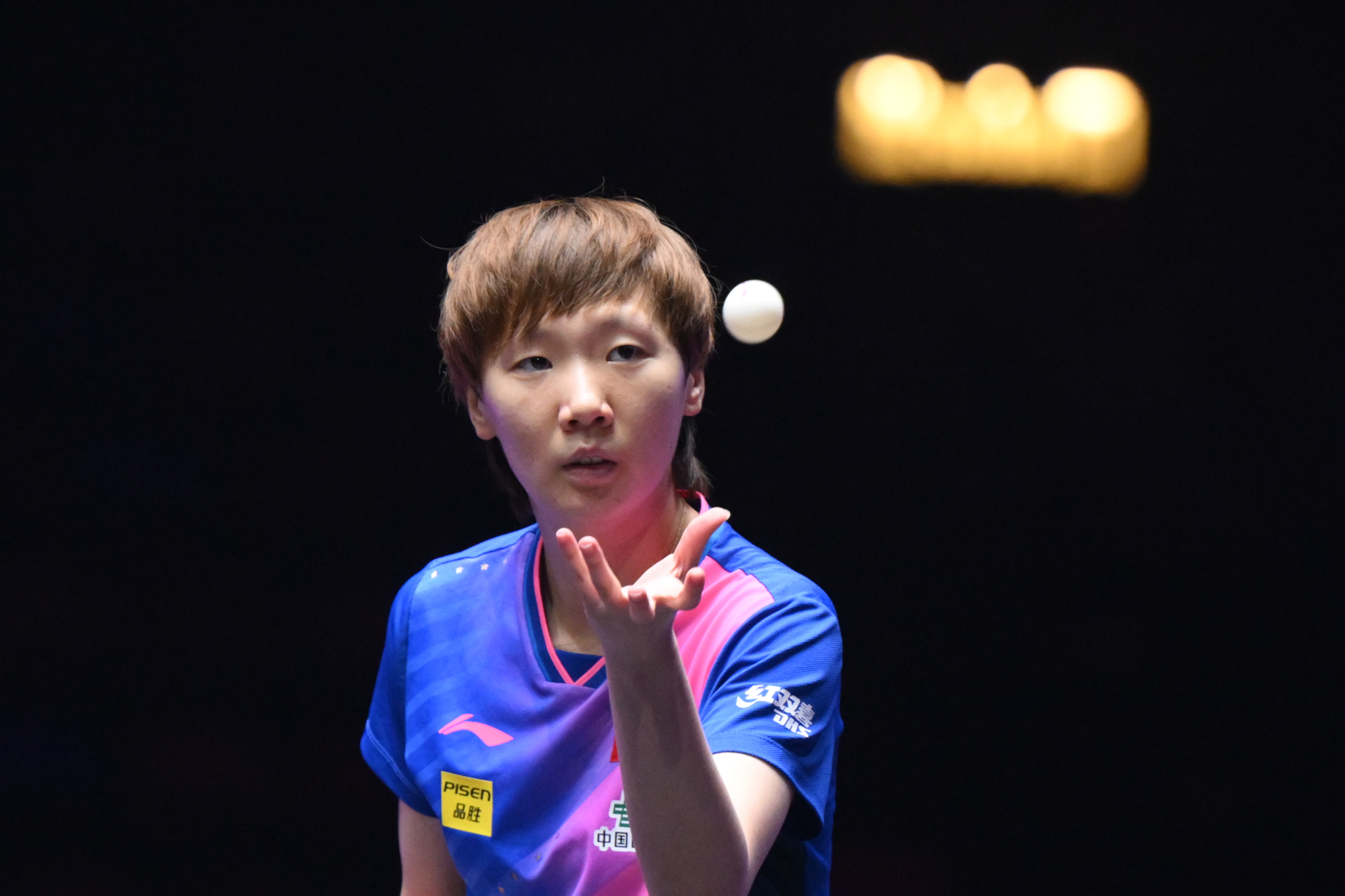9月11日,王曼昱在比赛中发球。新华社记者 张金加 摄