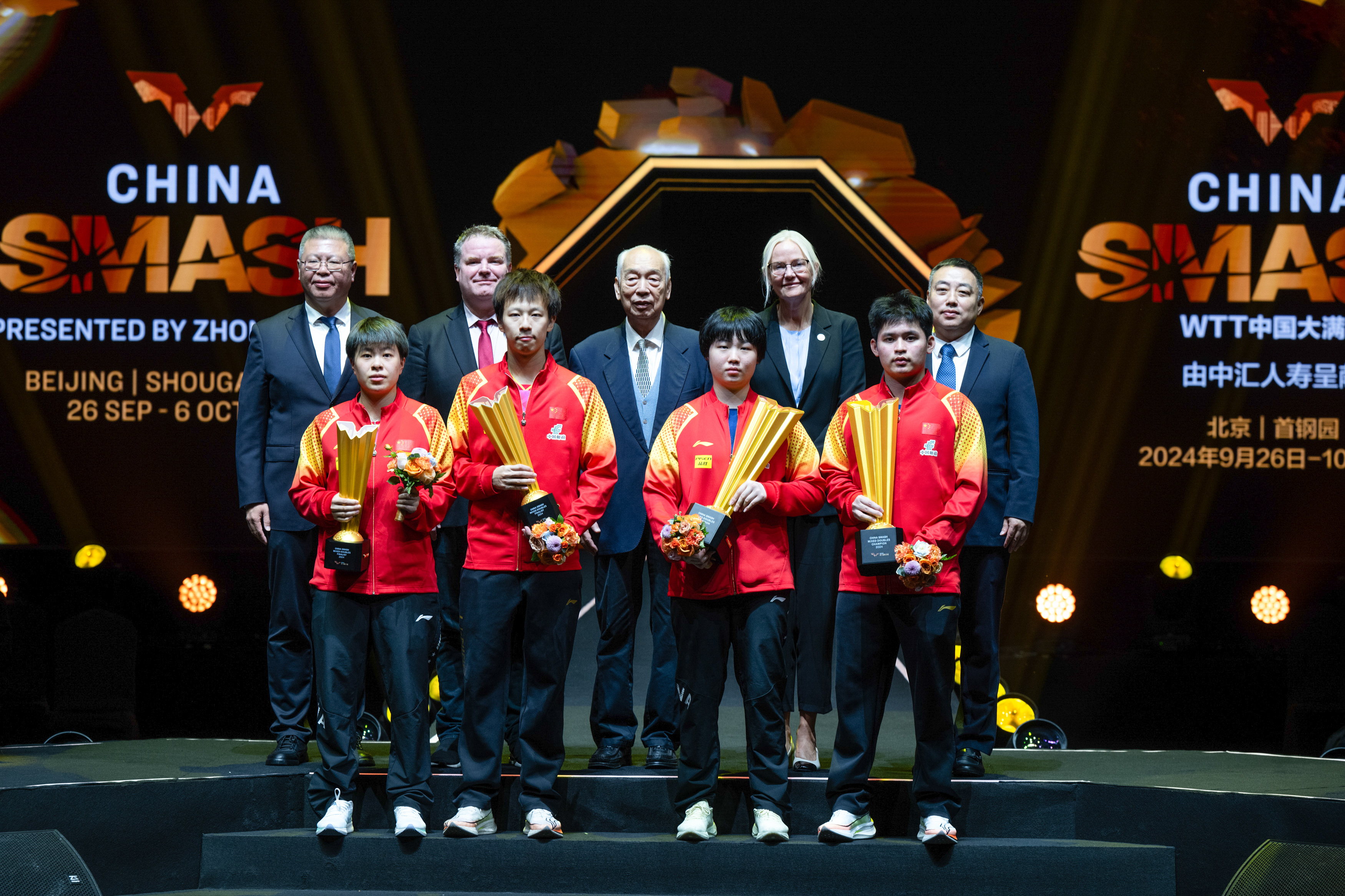 2024-10-04 23:41当日,在北京举行的2024年世界乒乓球职业大联盟(WTT)中国大满贯混双决赛中,中国组合林诗栋/蒯曼3比1战胜队友林高远/王艺迪,夺得冠军。