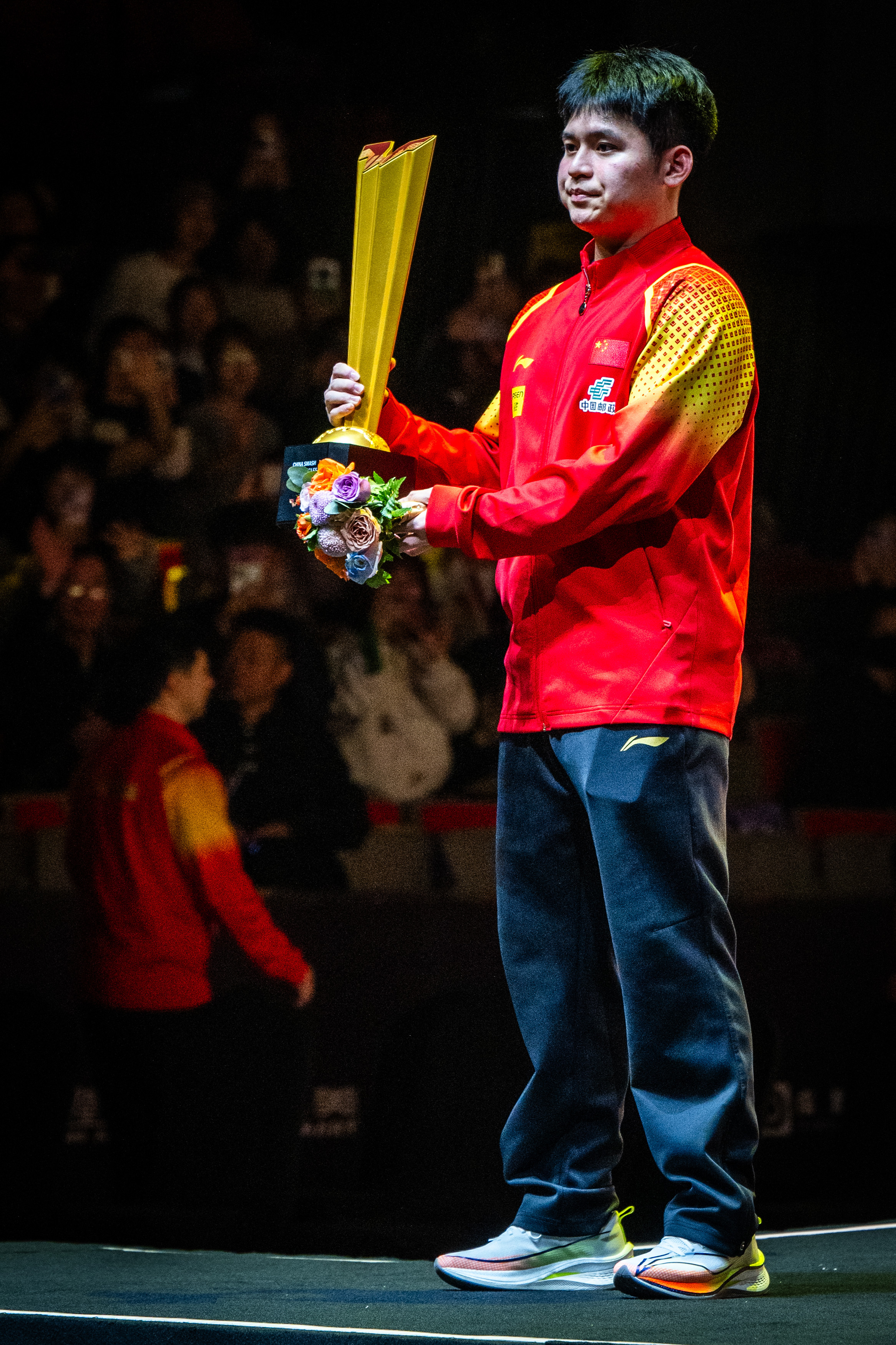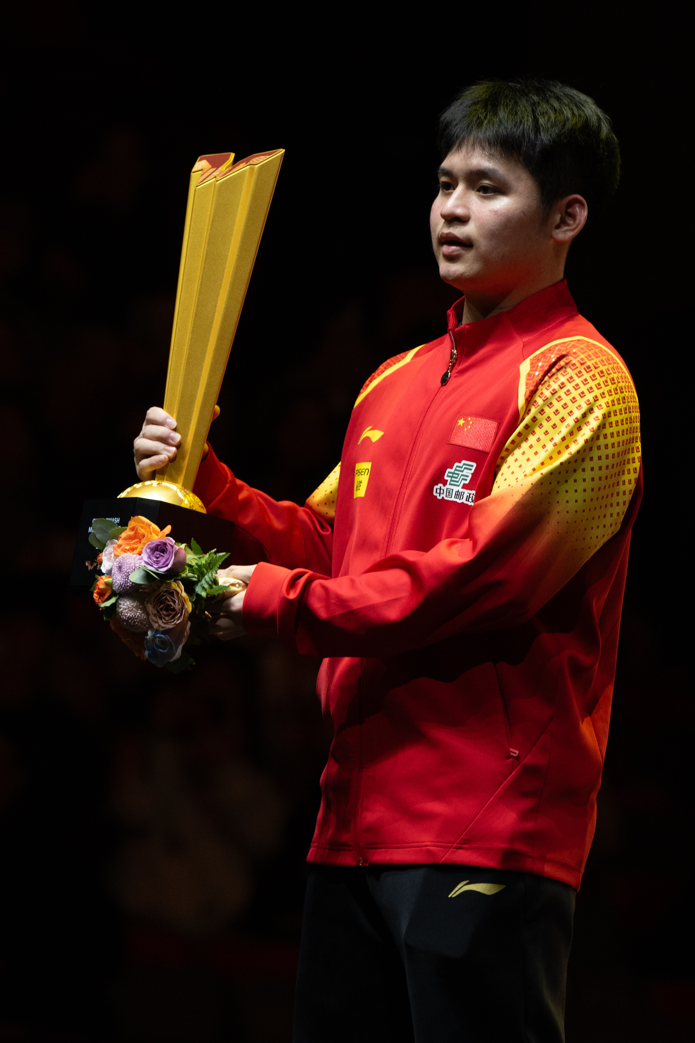 10月6日,冠军林诗栋在颁奖仪式上。新华社记者 肖艺九 摄