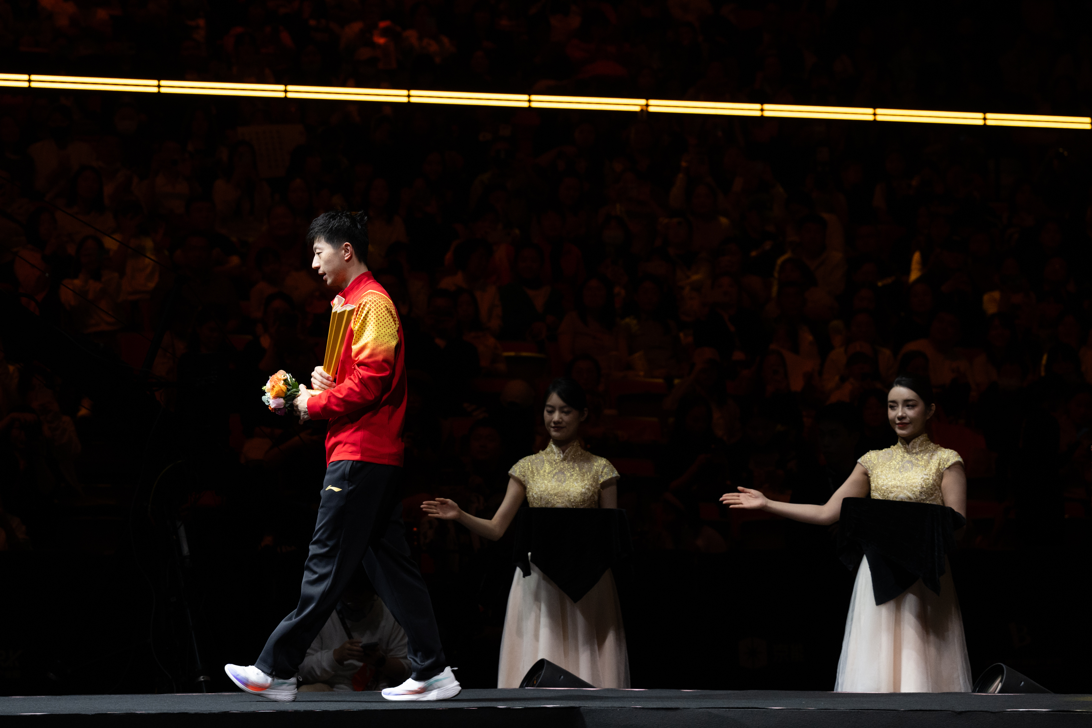 10月6日,马龙在颁奖仪式后离场。新华社记者 肖艺九 摄