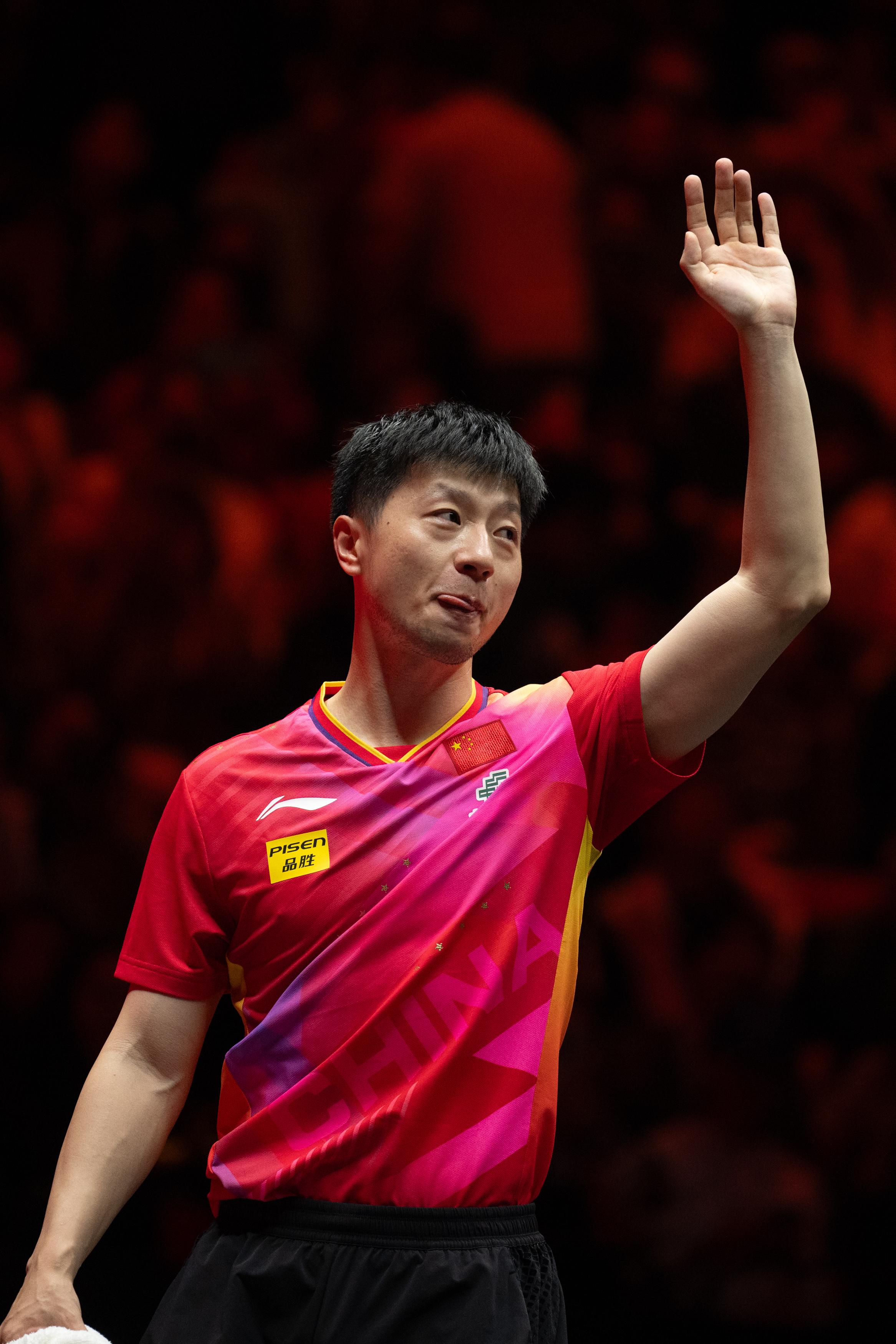 10月6日,马龙在比赛结束后向球迷挥手致意。新华社记者 肖艺九 摄