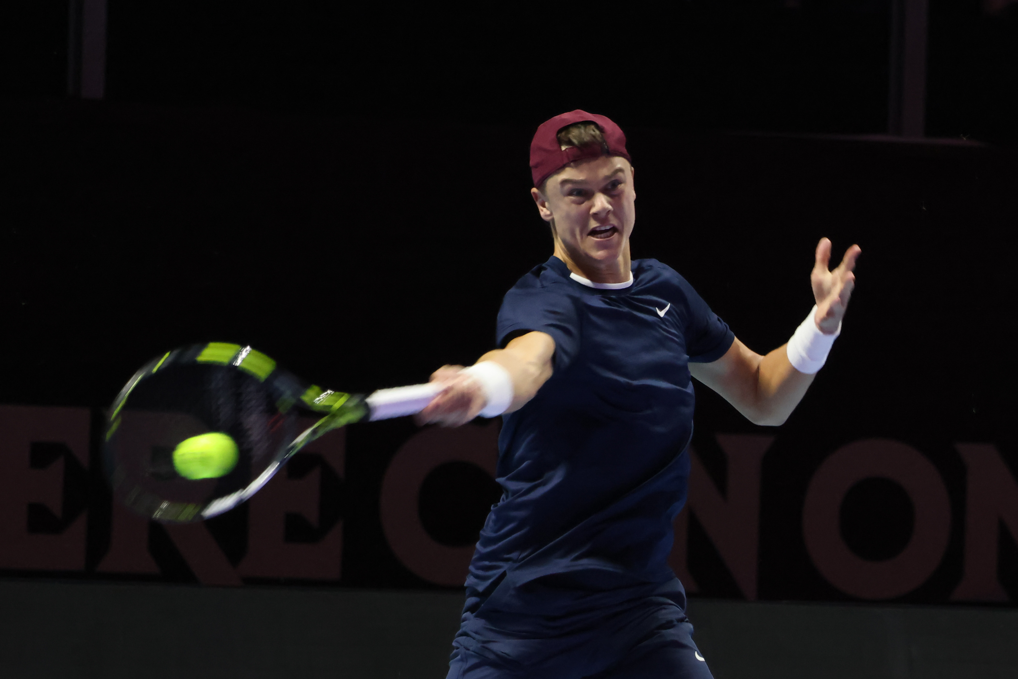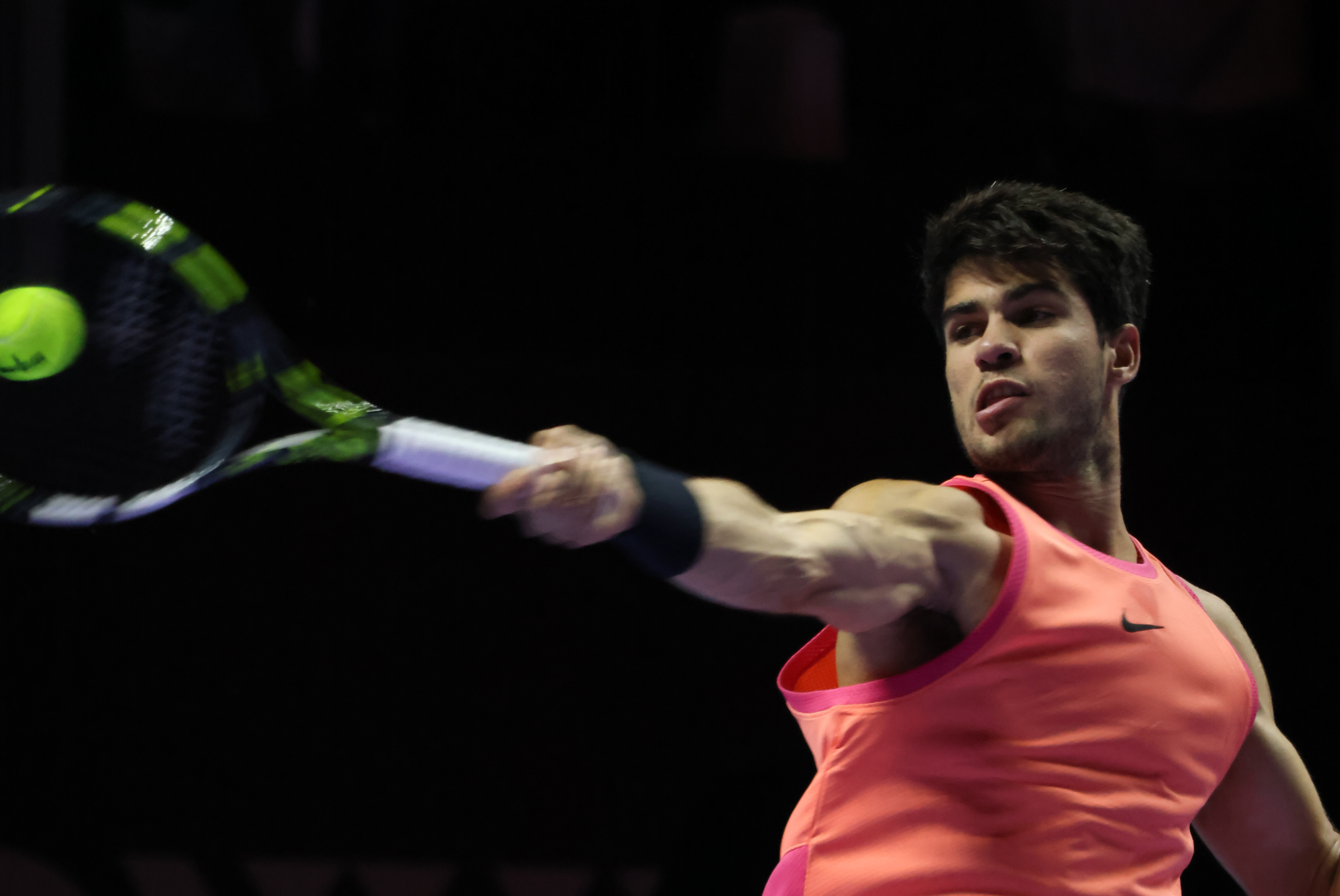 10月16日,阿尔卡拉斯在比赛中回球。新华社记者 王海洲 摄