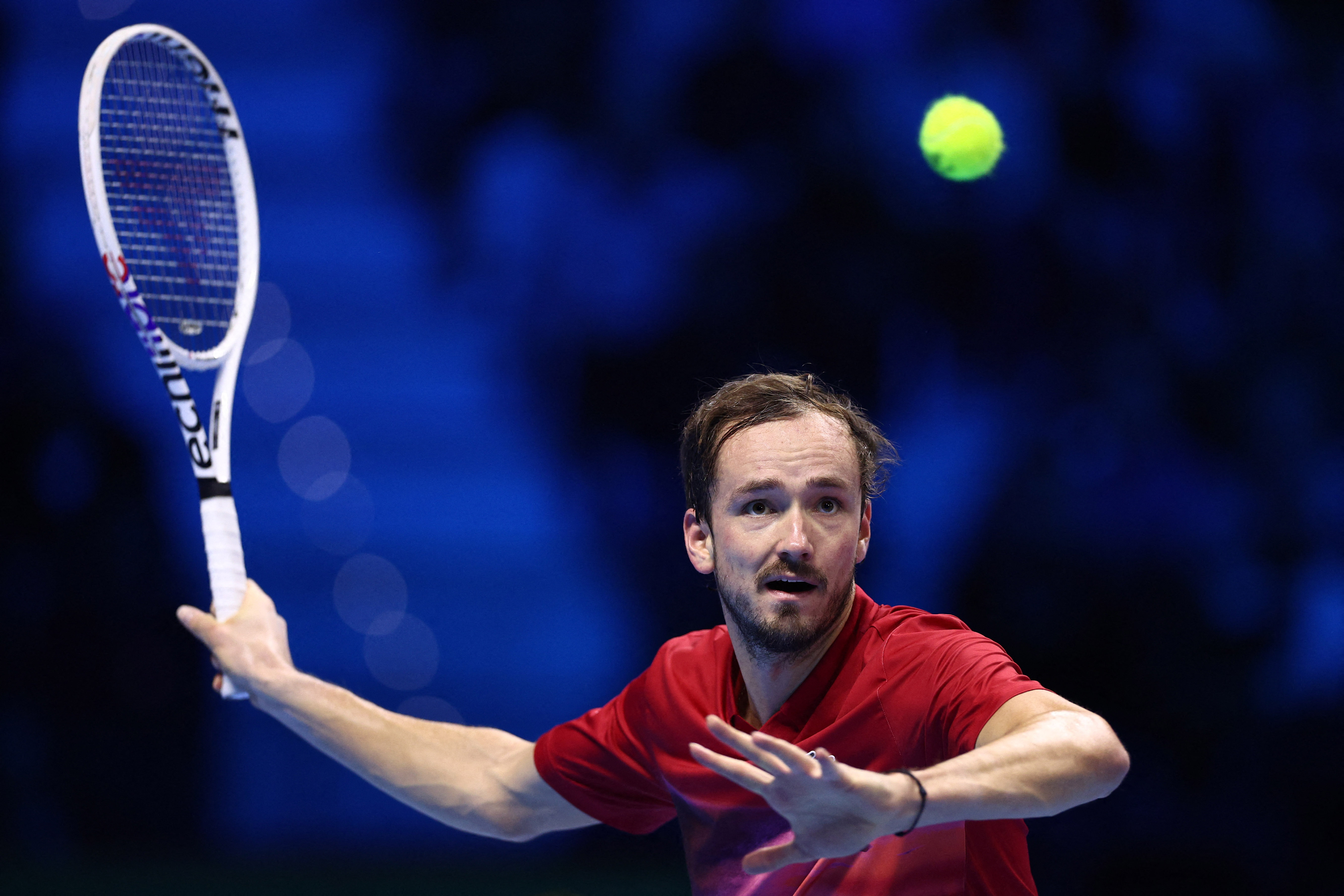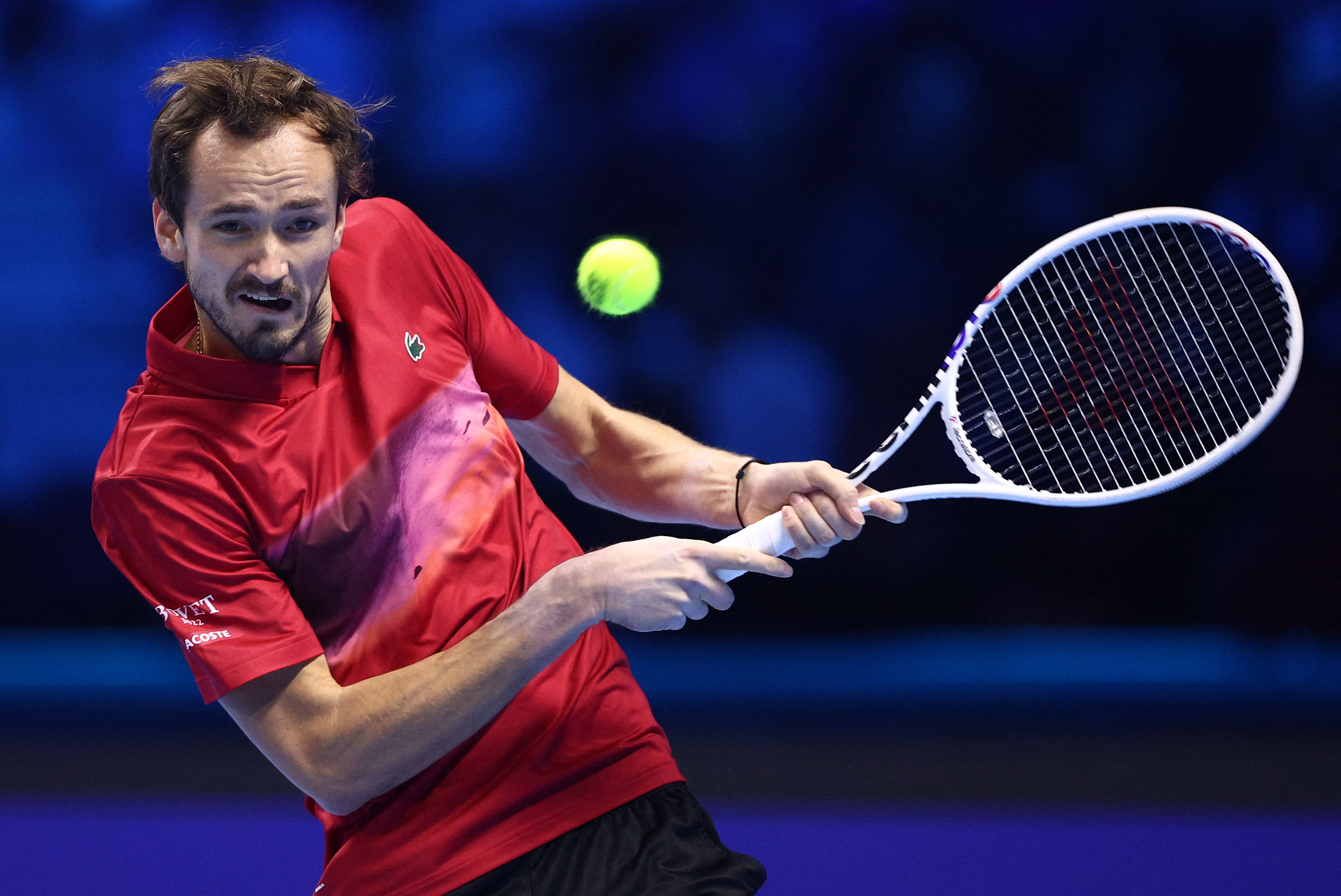 11月12日,梅德韦杰夫在比赛中回球。新华社/路透