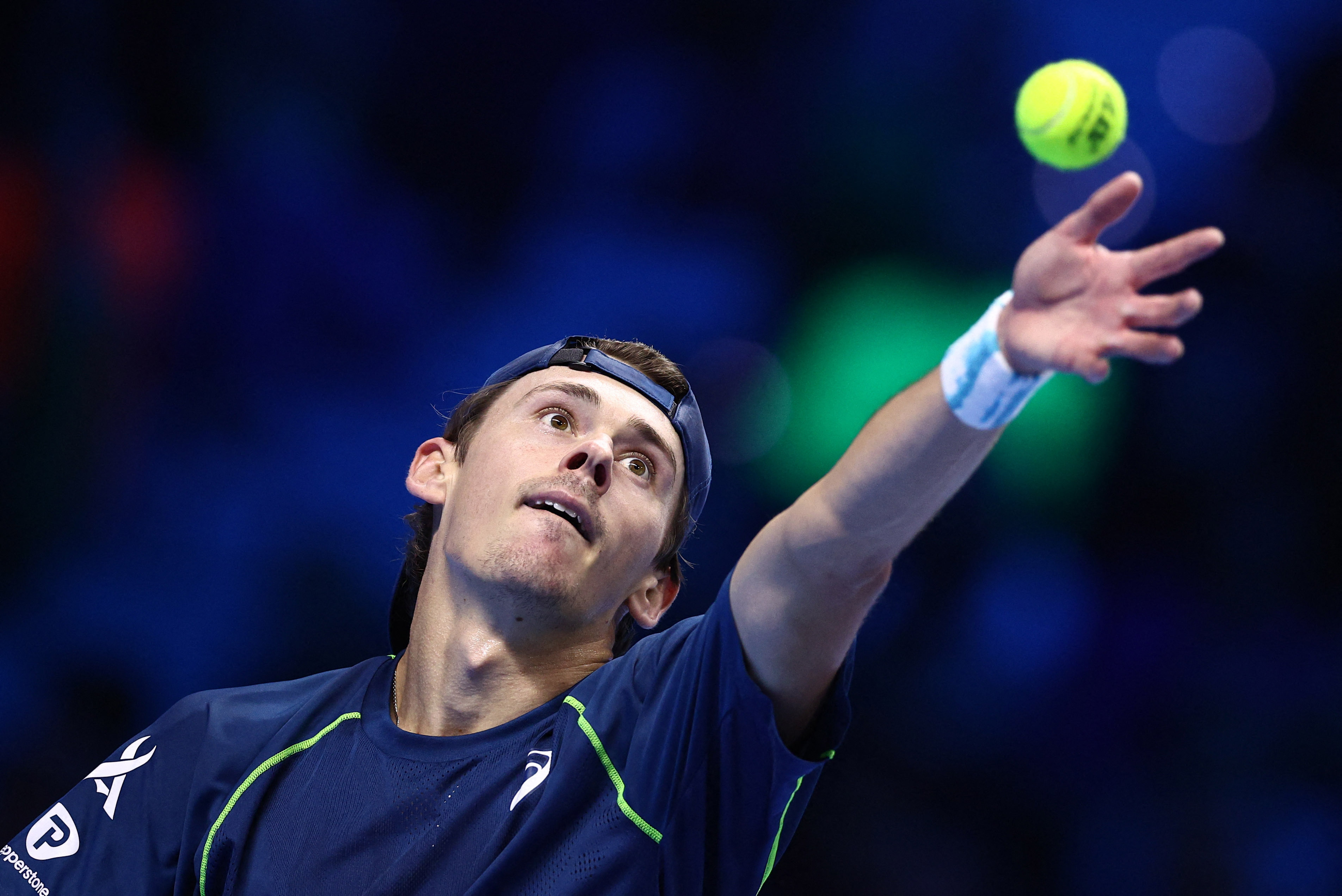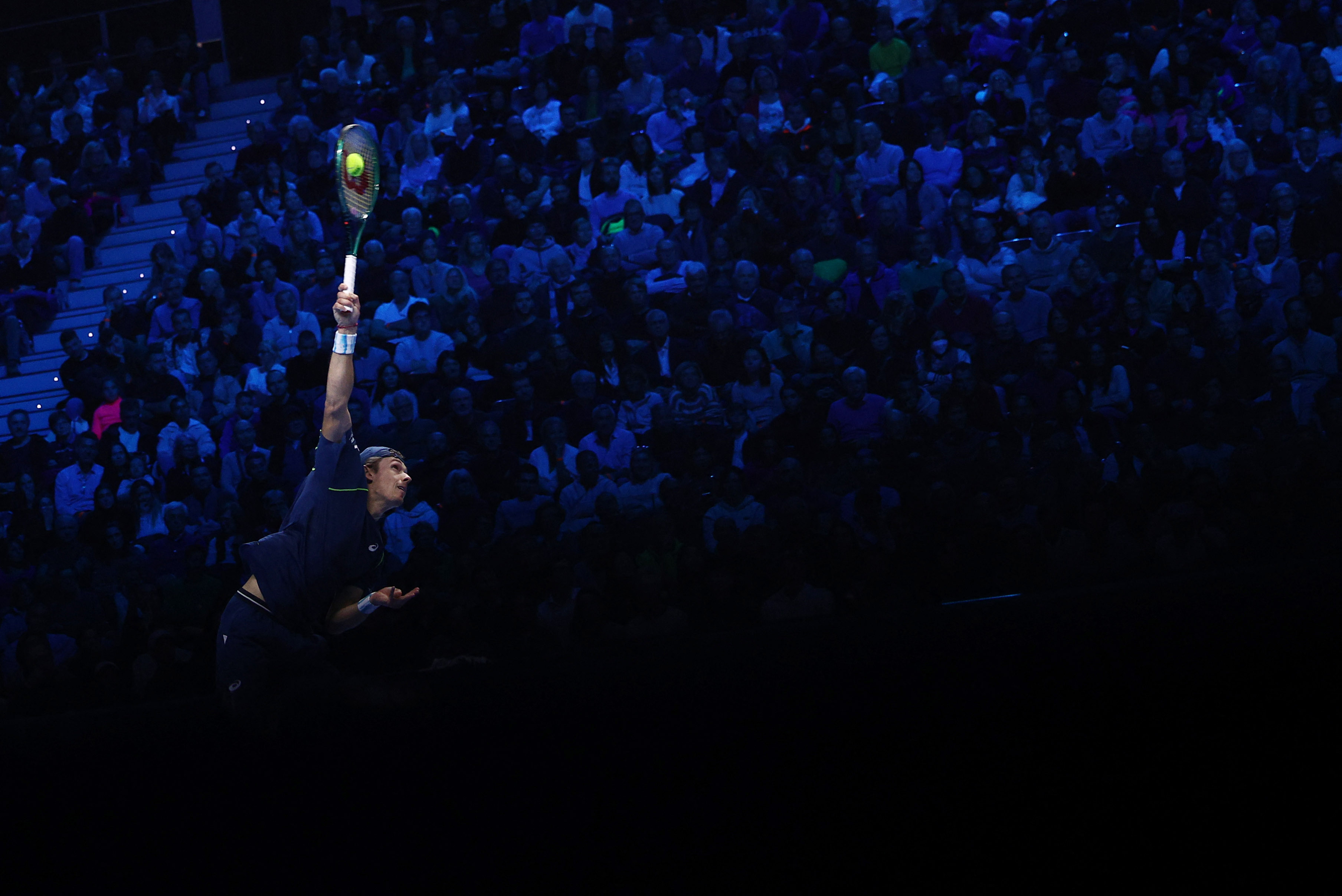 11月12日,德米纳尔在比赛中发球。新华社/路透