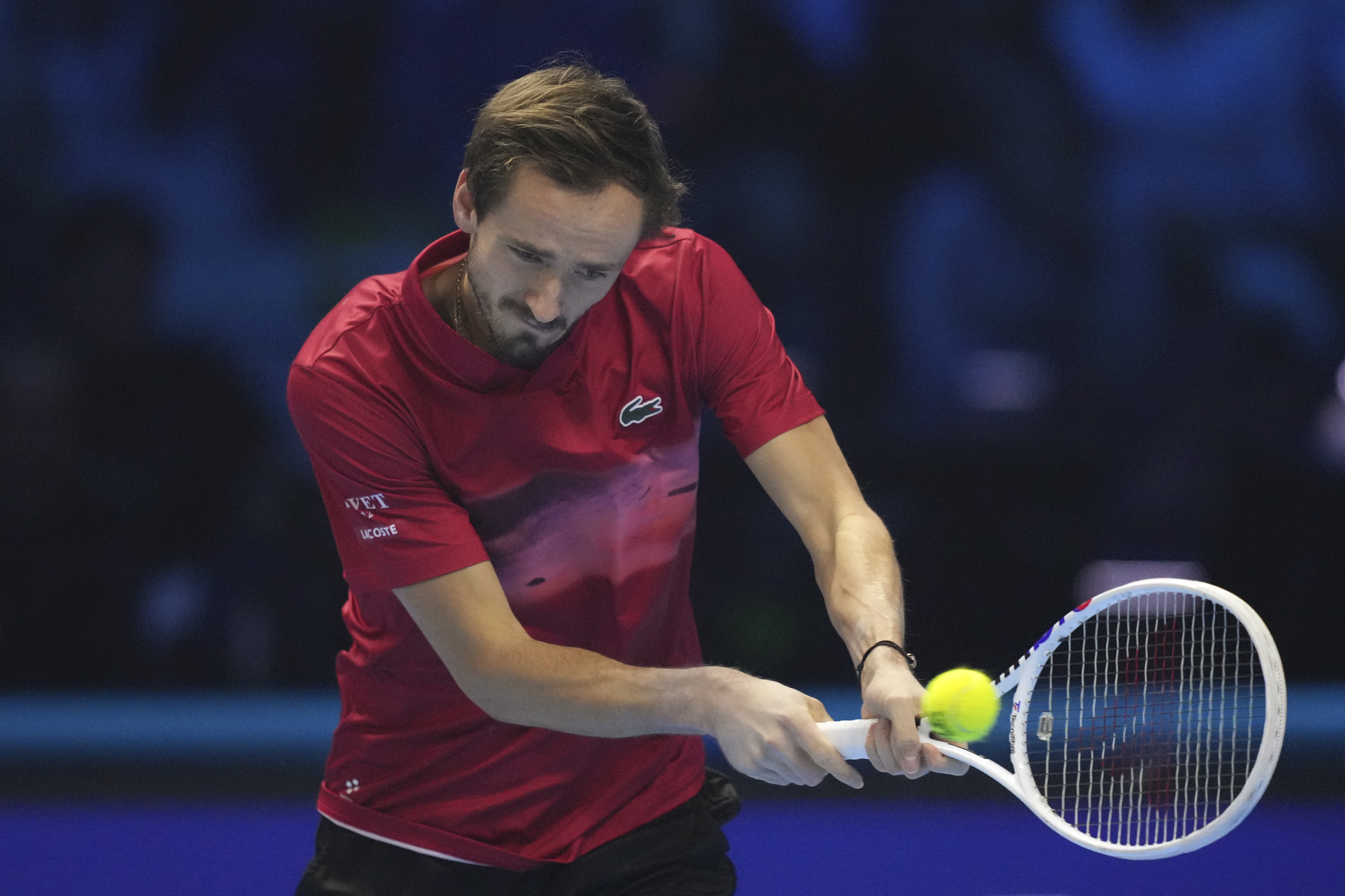 11月12日,梅德韦杰夫在比赛中回球。新华社/美联