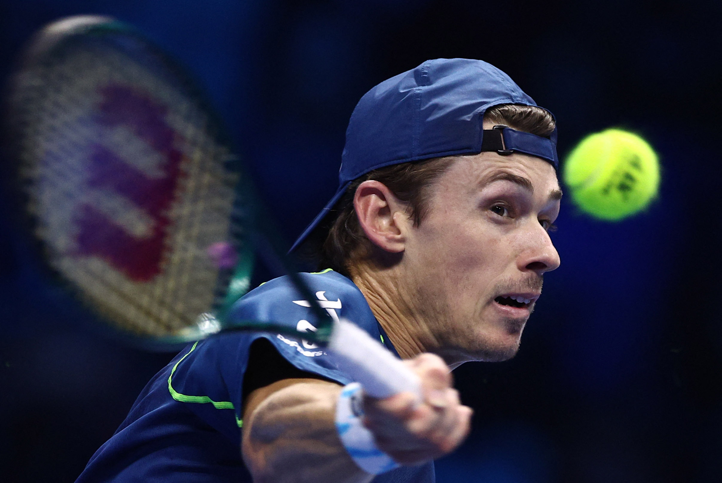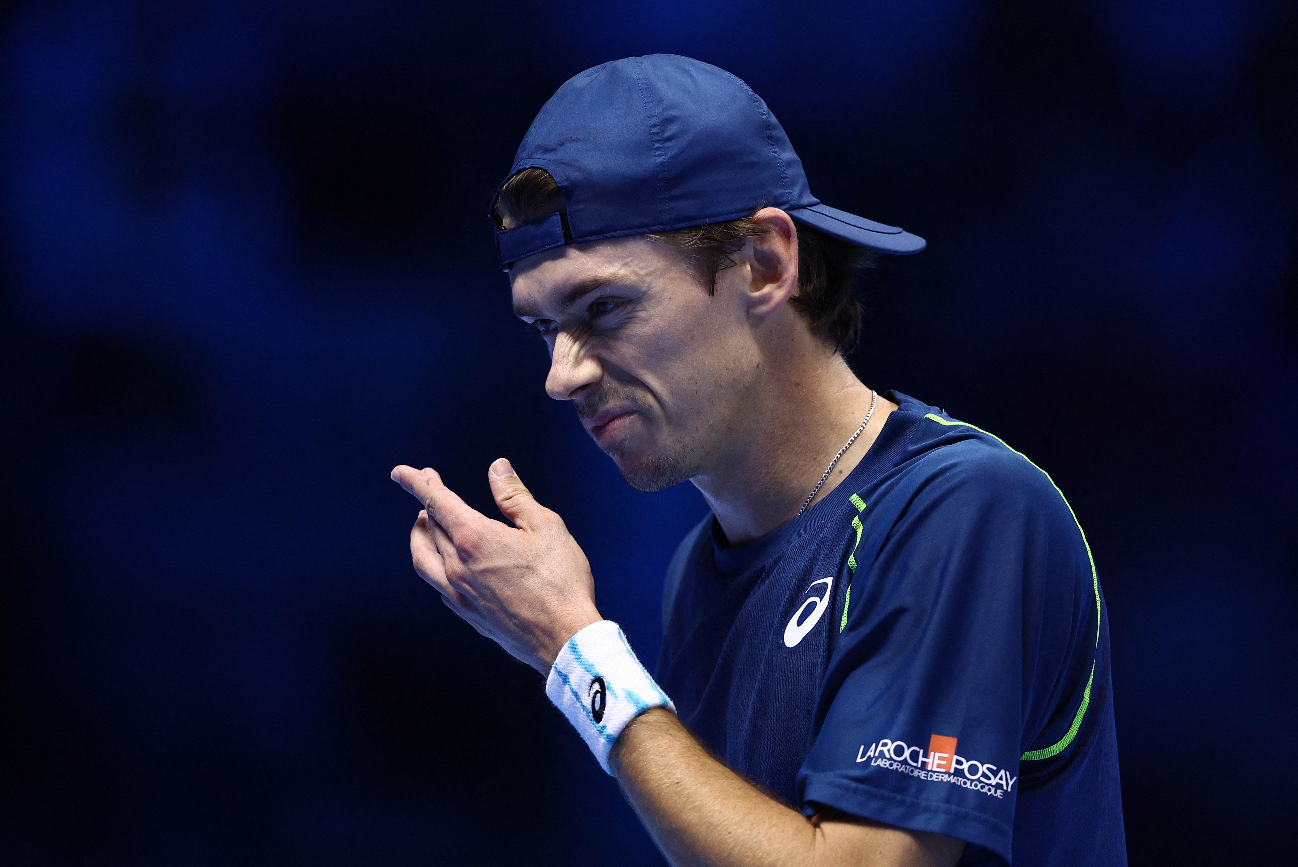 11月12日,德米纳尔在比赛中回球。新华社/路透