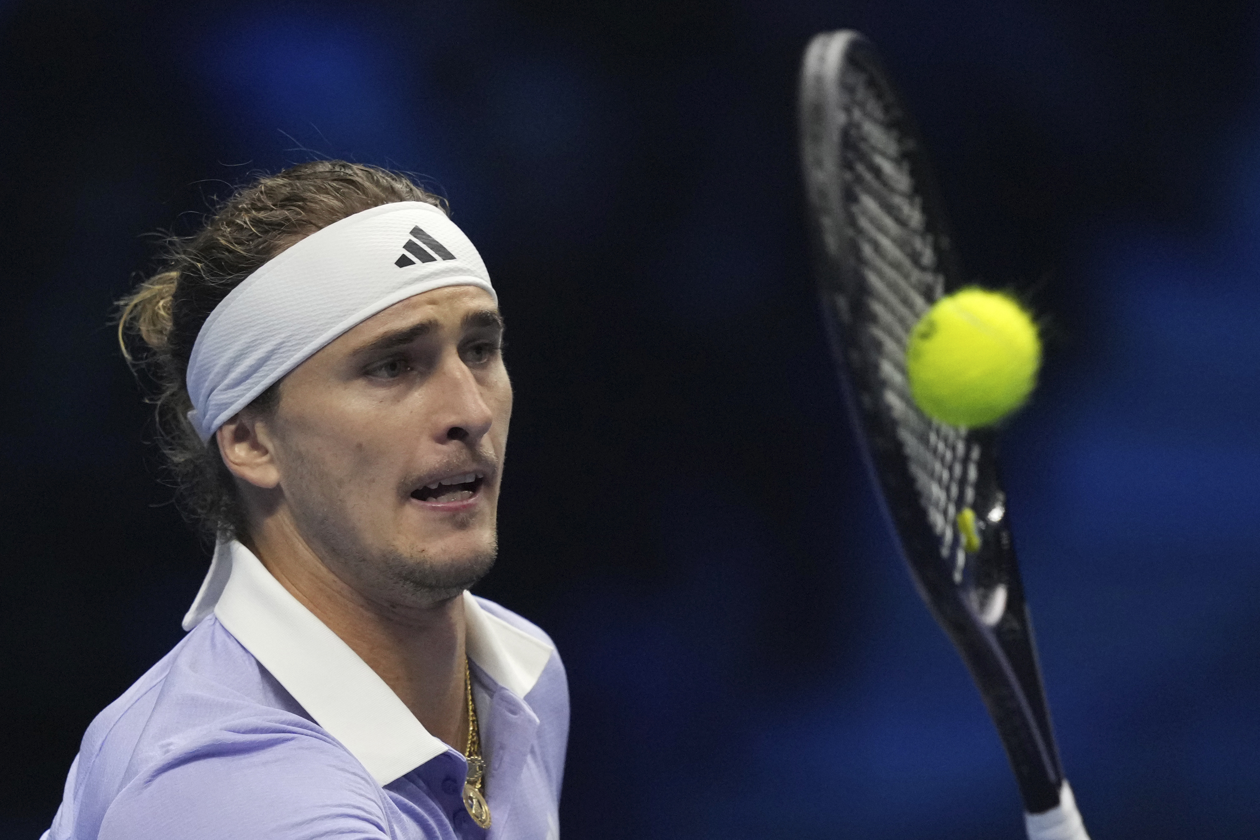 11月13日,兹维列夫在比赛中回球。新华社/欧新
