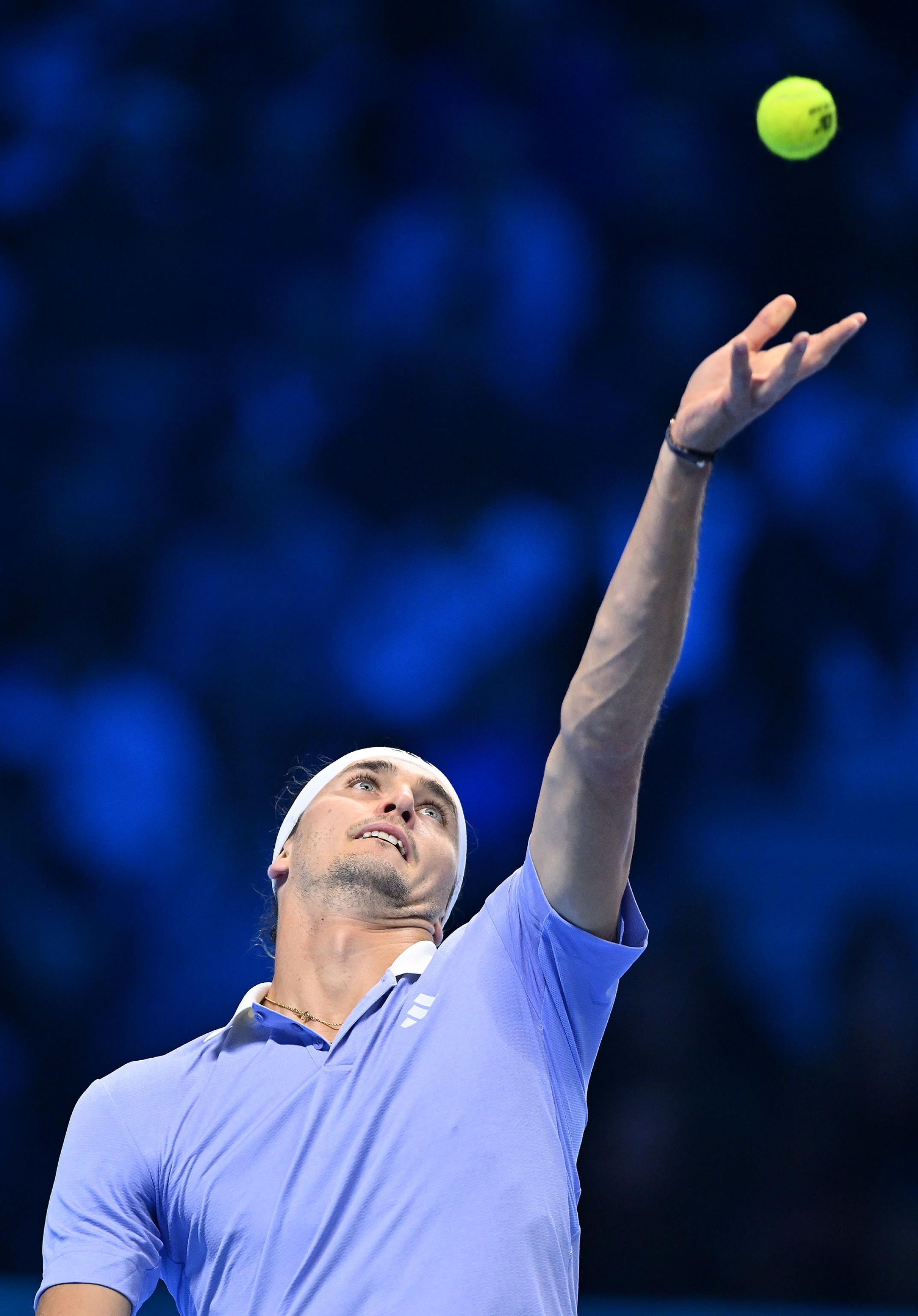 11月13日,兹维列夫在比赛中发球。新华社/欧新