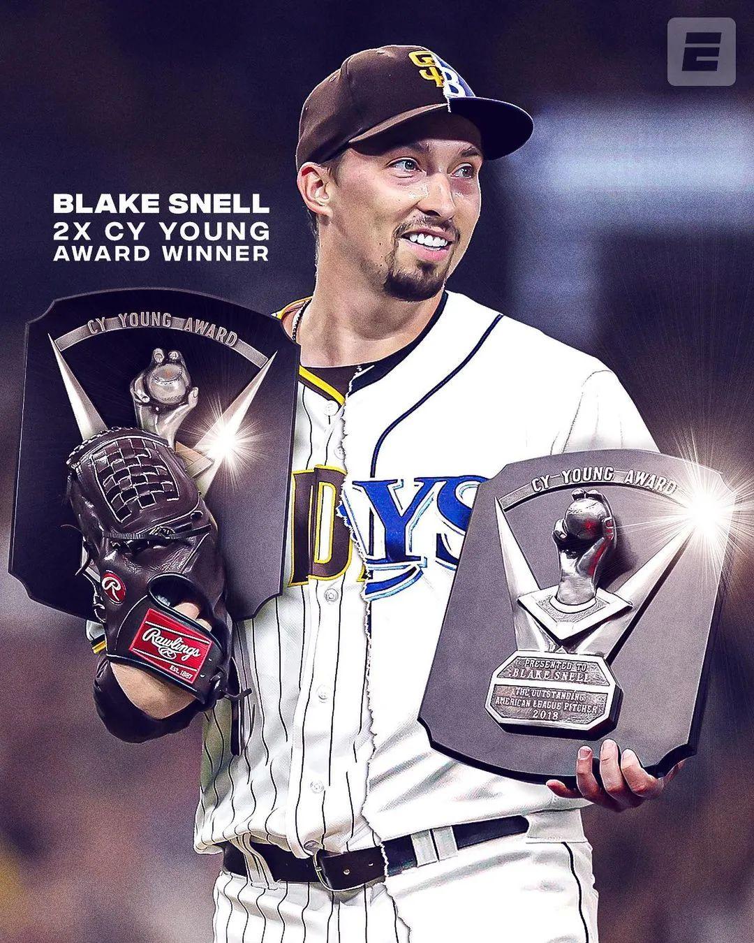 布莱克-斯内尔(Blake Snell),这位两届赛扬奖得主,自由市场上最好的投手之一,在当地时间周二和道奇签下了一份5年总价1.82亿的合同。斯内尔已经在自己的社交媒体上发布了穿着道奇球衣的照片,他将在当地时间周三接受体检。