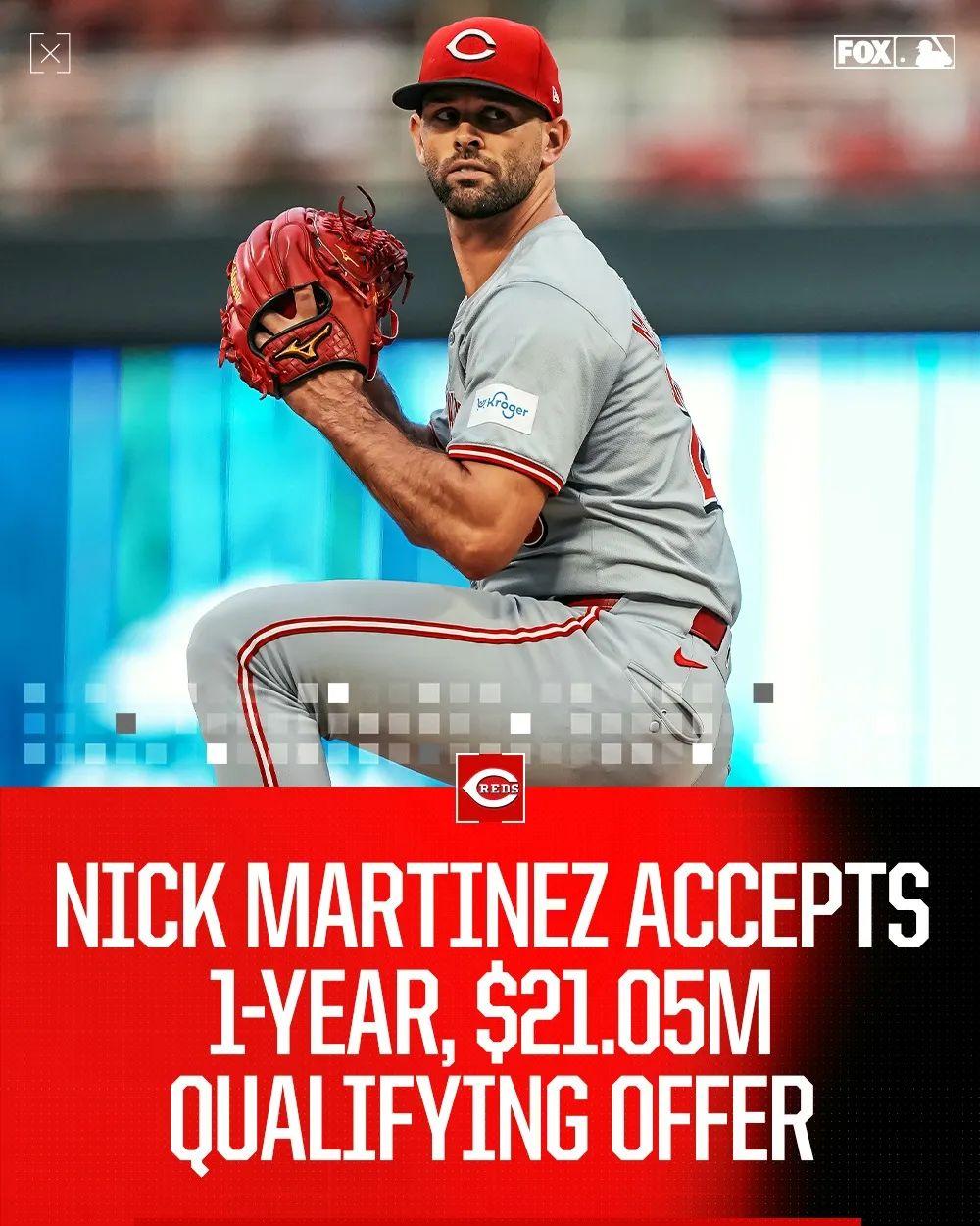 右投手尼克-马丁内斯(Nick Martinez)接受了辛辛那提红人队2105万美元的合格报价(qualifying offer),选择留在本队。