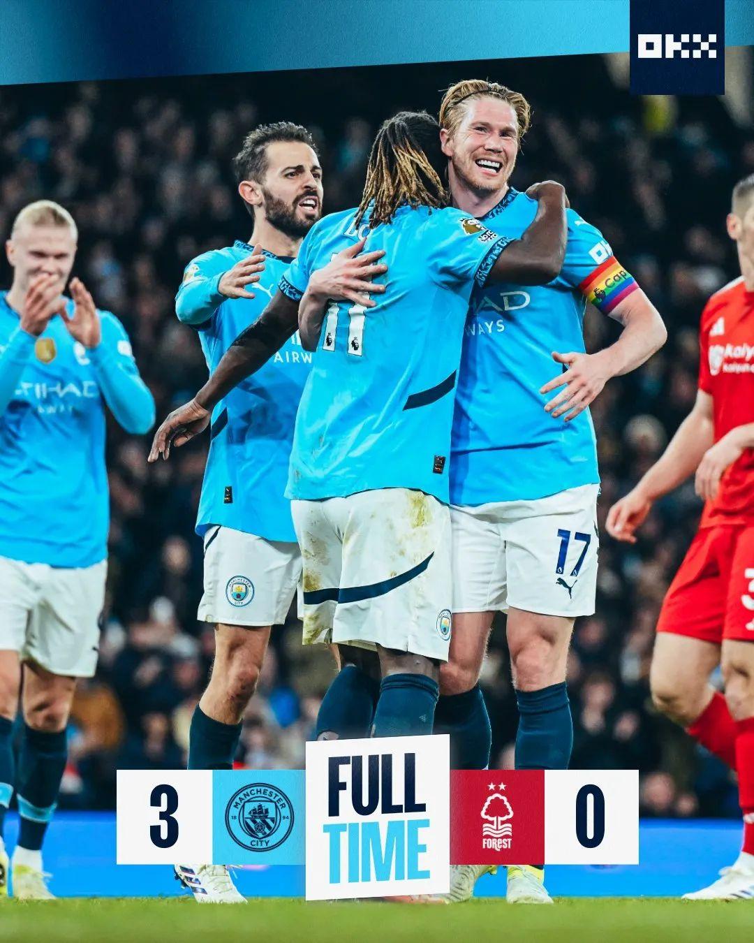 德布劳内、多库传射,B席闪击,我城3-0完胜诺丁汉森林!