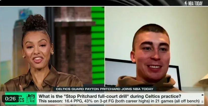 普理查德在和ESPN进行连线时羞赧一笑,你们可曾听过,在这赛季的凯尔特人有一个训练项目叫做“挡住普理查德(Stop Pritchard)”。