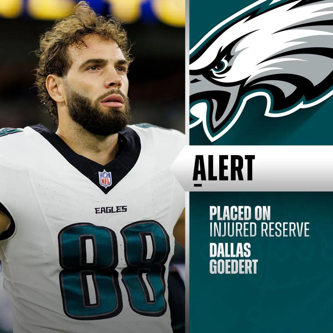 近期状态极佳的费城老鹰遭遇了一个伤病问题,他们将球队主力近端锋达拉斯-戈德特放入了伤病储备名单。这位明星近端锋预计将在季后赛期间复出。