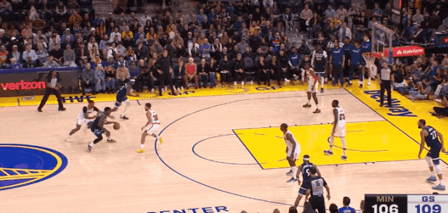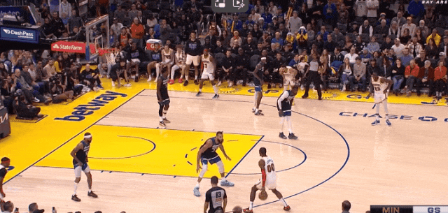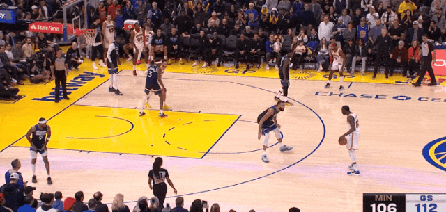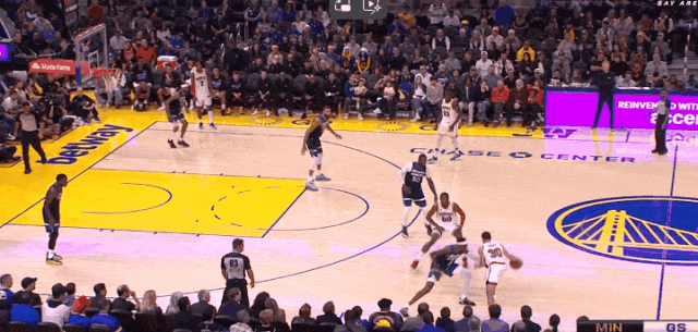 库里前三节拿捏戈贝尔,第三节末中圈远射拿到领先,第四节森林狼围库里,卢尼乘机吃饱。库里下场休息,然后爱德华兹第5次失误: