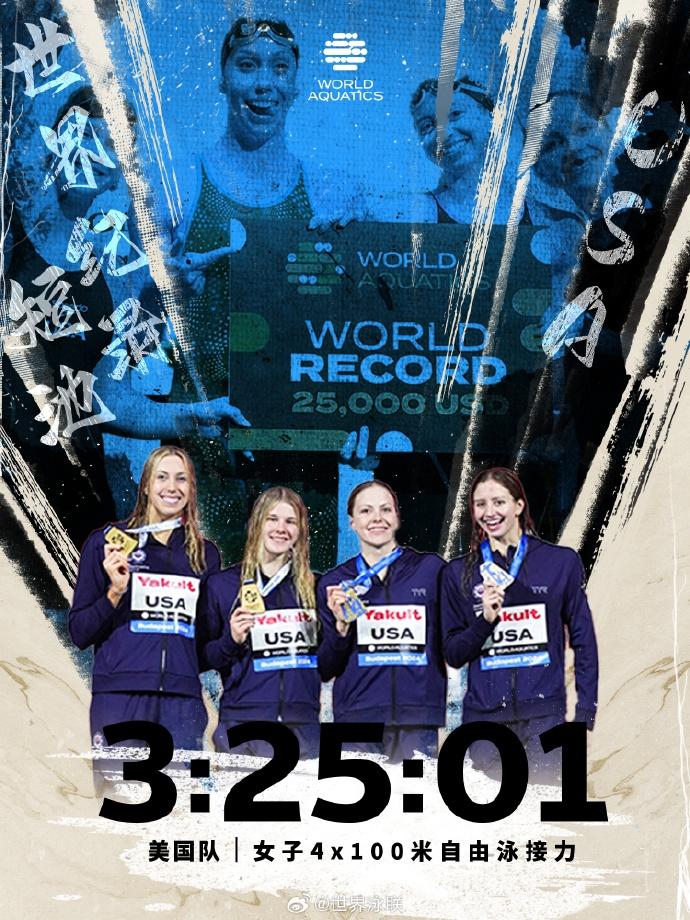 池中称霸!美国队男女4x100米自由泳接力赛双双打破世界纪录