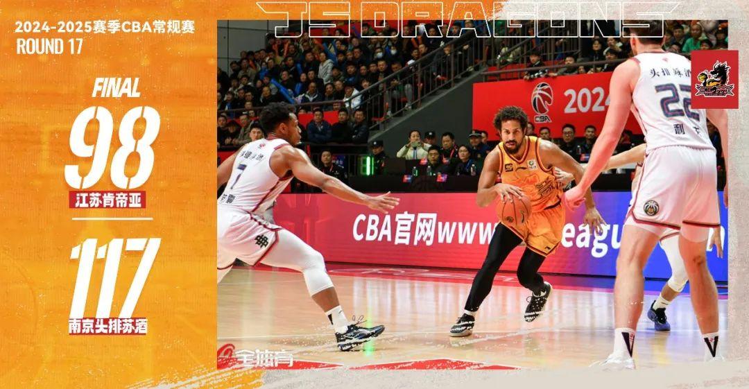 进入末节,对手延续火热手感连得四分。暂停回来,杰克逊突破内线造成杀伤。对手三分入网,郑祺龙反手抛投予以回应,对手连续中投取分,分差来到18分。汤普森中距离跳投命中!同曦再中三分,刘泽希快攻上篮打进2+1回应对手!对手三分再度回应后打进2+1。杰克逊接球跳投命中!刘泽希外线三分稳稳入网!马国栋接快传篮下取分,刘泽希撕破内线上篮打进!对手再次命中三分。最终江苏肯帝亚以98比117不敌南京头排苏酒。