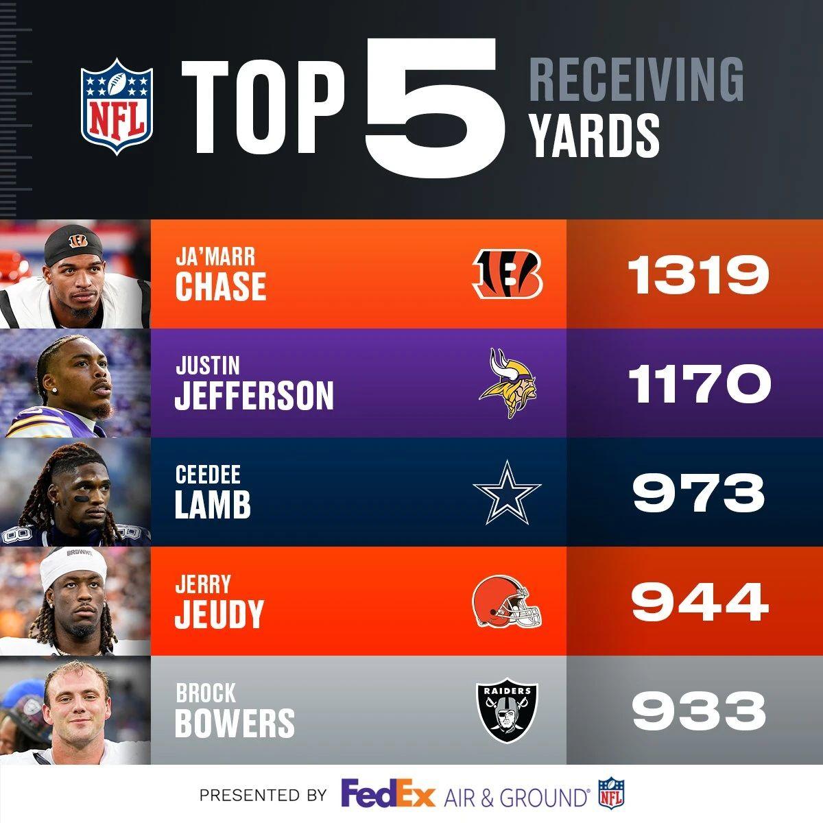 接球码数榜:接近赛季末LSU双雄“打疯了”!蔡斯瞄准接球三冠王!