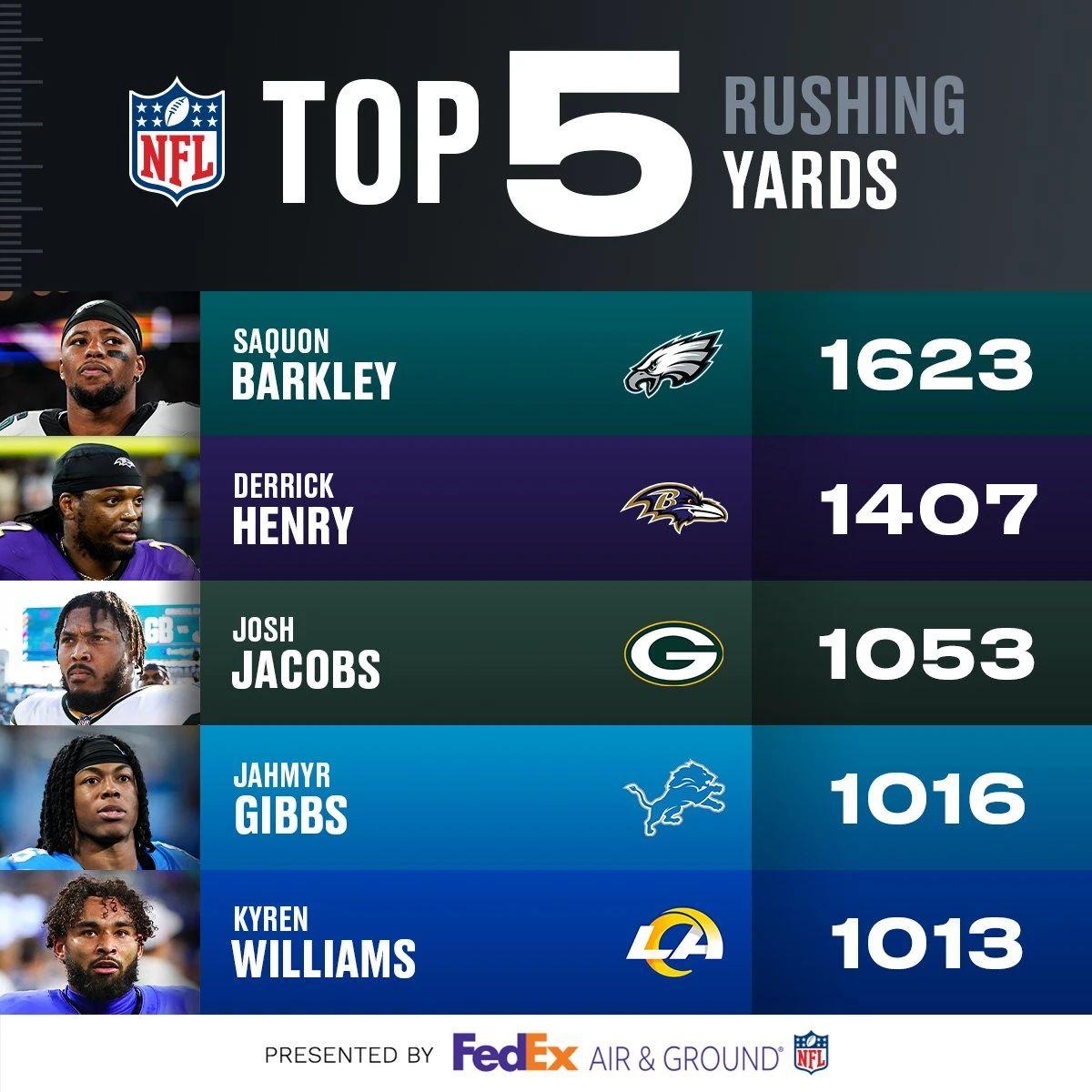 冲球码数榜:“腿哥”巴克利能否延续超级表现打破赛季冲球纪录?多人冲破千码大关!