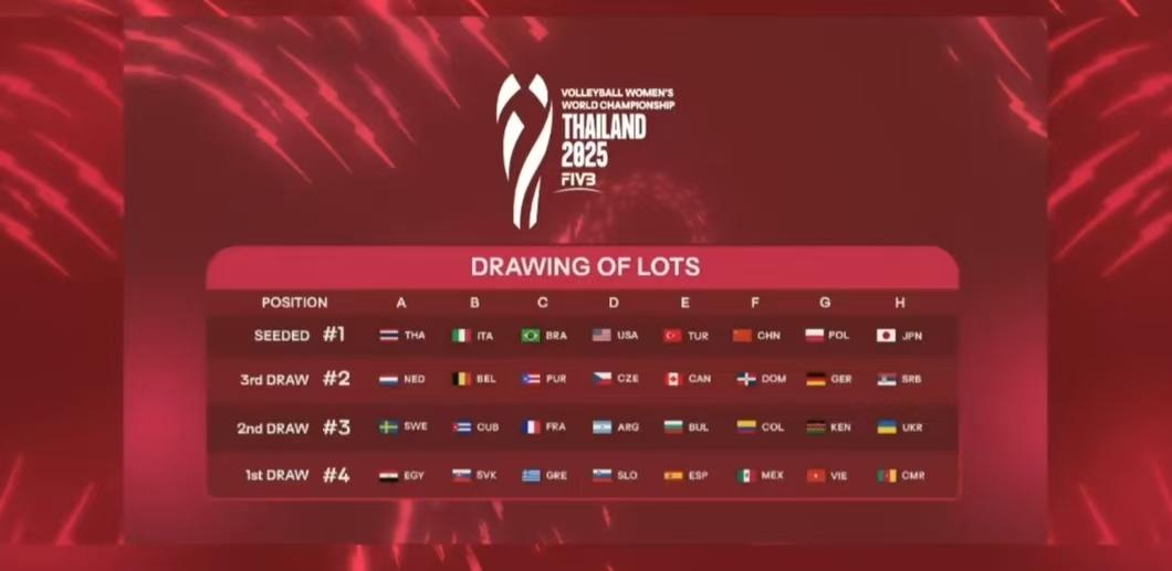 2025年女排世锦赛分组揭晓 中国队与多哥墨三队同组