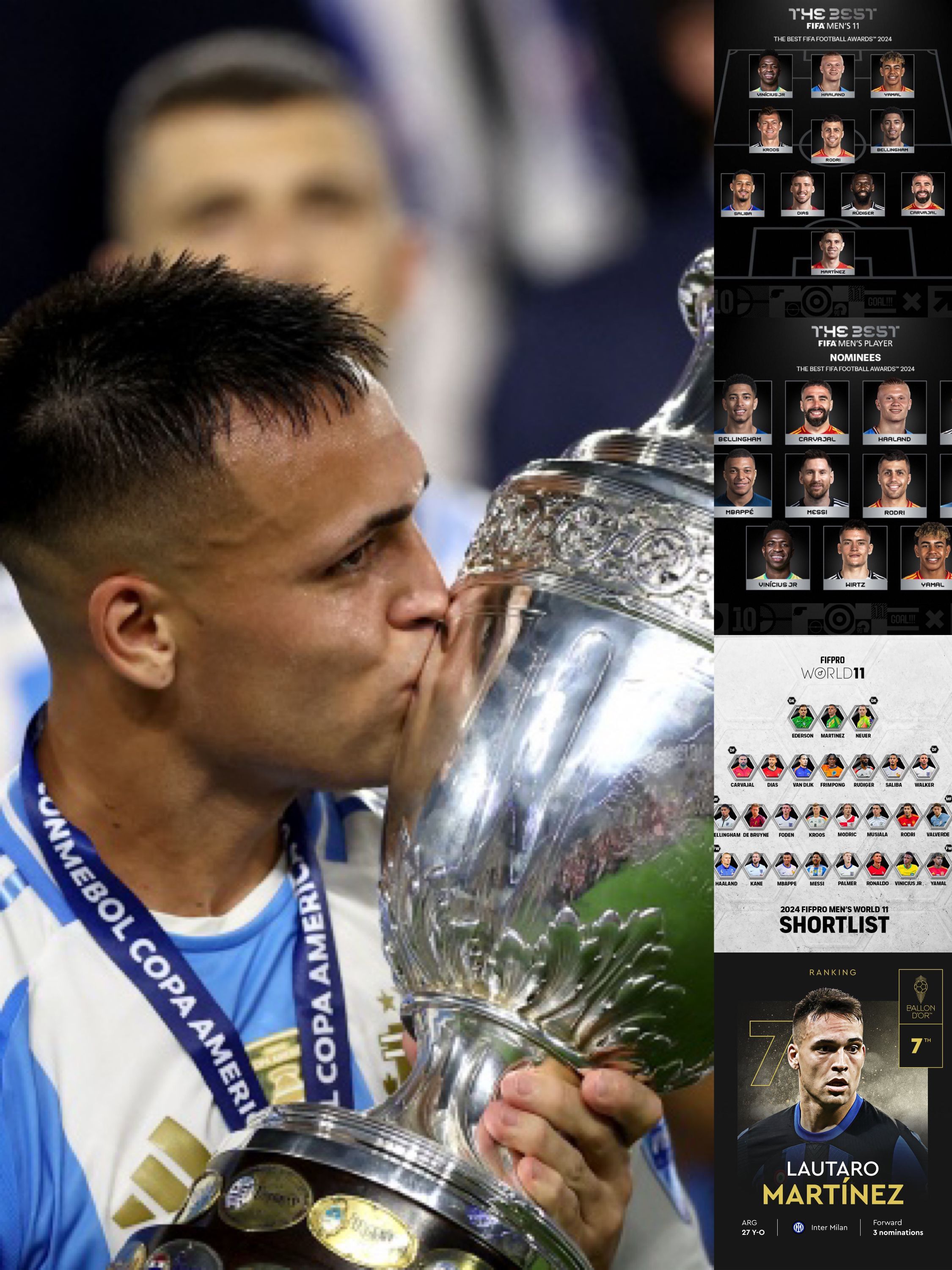 2024年FIFA年度最佳阵容公布,进入候选名单的劳塔罗无缘最终阵容,今年再次在奖项评选中落选。