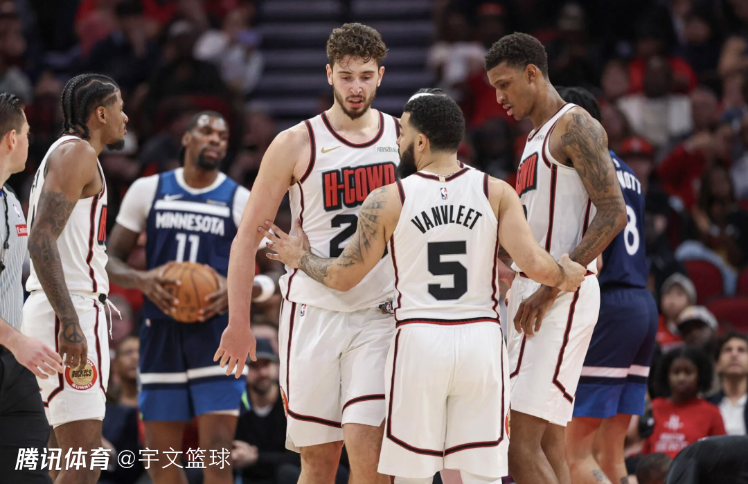 火箭5人上双,申京38分12篮板,阿门-汤普森20分11篮板,范弗利特18分6篮板7助攻,杰伦-格林14分6助攻,小贾巴里-史密斯12分7篮板
