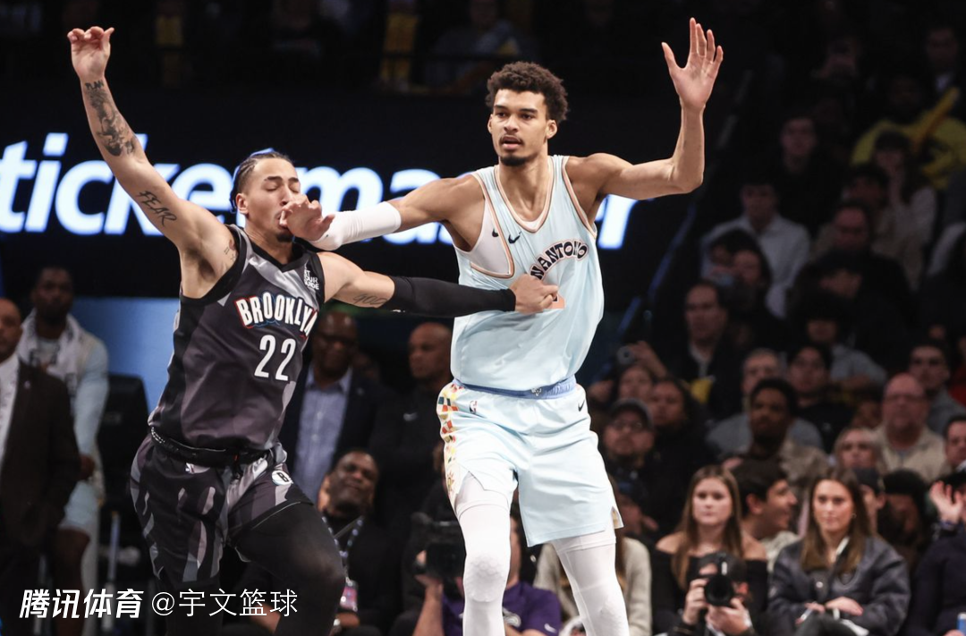 马刺首节进攻不顺,单节仅得到11分,最多被篮网拉开分差到14分。尚帕尼化身马刺奇兵,帮助球队打出一波15-2的进攻高潮逆转局势反超比分。下半场比赛文班亚马找到进攻手感,单节三分三连击,帮助马刺逐步拉开分差,末节比赛最多领先篮网17分,没有给对手任何追分机会。最终马刺逆转击败篮网,文班亚马过去6战送出39次封盖,他连续22场比赛至少送出1记三分和1次盖帽超越波尔津吉斯。
