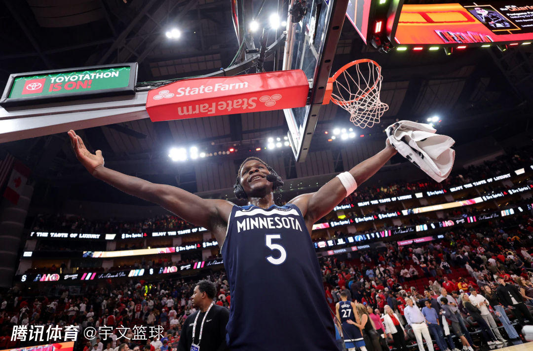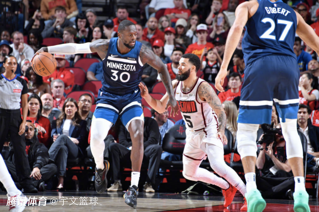 森林狼5人上双,兰德尔27分8篮板8助攻,爱德华兹24分5篮板,迪文琴佐22分4篮板4助攻,里德14分,亚历山大-沃克11分4篮板5助攻