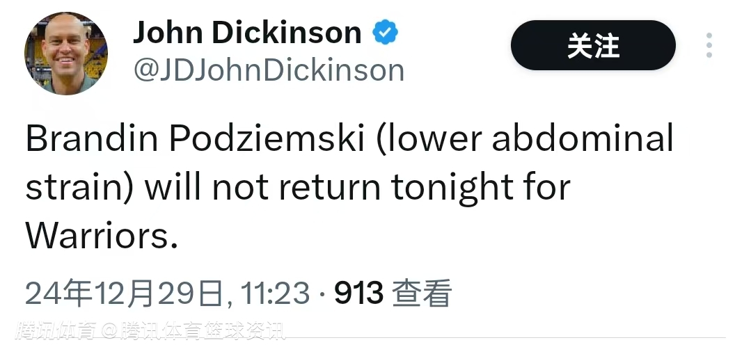 2024-12-29 12:00北京时间12月29日,NBA常规赛继续进行,勇士主场迎战太阳,比赛进入到下半场,勇士球员波杰姆斯基因为下腹部拉伤提前退场,本场比赛也不会再回归。