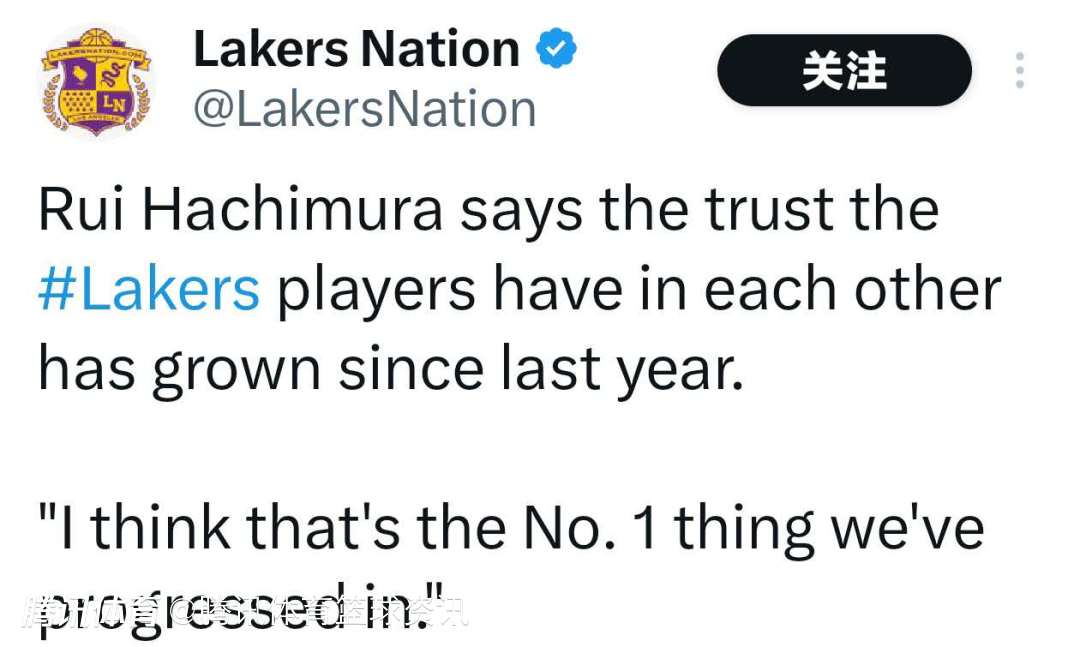 在谈到湖人取得的进步时,八村垒表示,自上个赛季以来,球队成员之间的信任度有所提升,他说道:“我认为这是我们取得的最大进展。”
