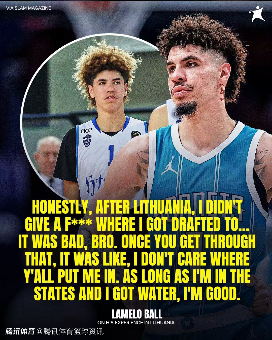 谈及自己的选秀历程,鲍尔说道:“坦白说,从立陶宛回来后,我不在乎自己会被选到哪里,因为那里(立陶宛)真的很糟糕。兄弟,一旦你经历了那些,我的心态就是我不在乎你们把我放在哪里。只要我在美国,有水喝,我就满足了。”