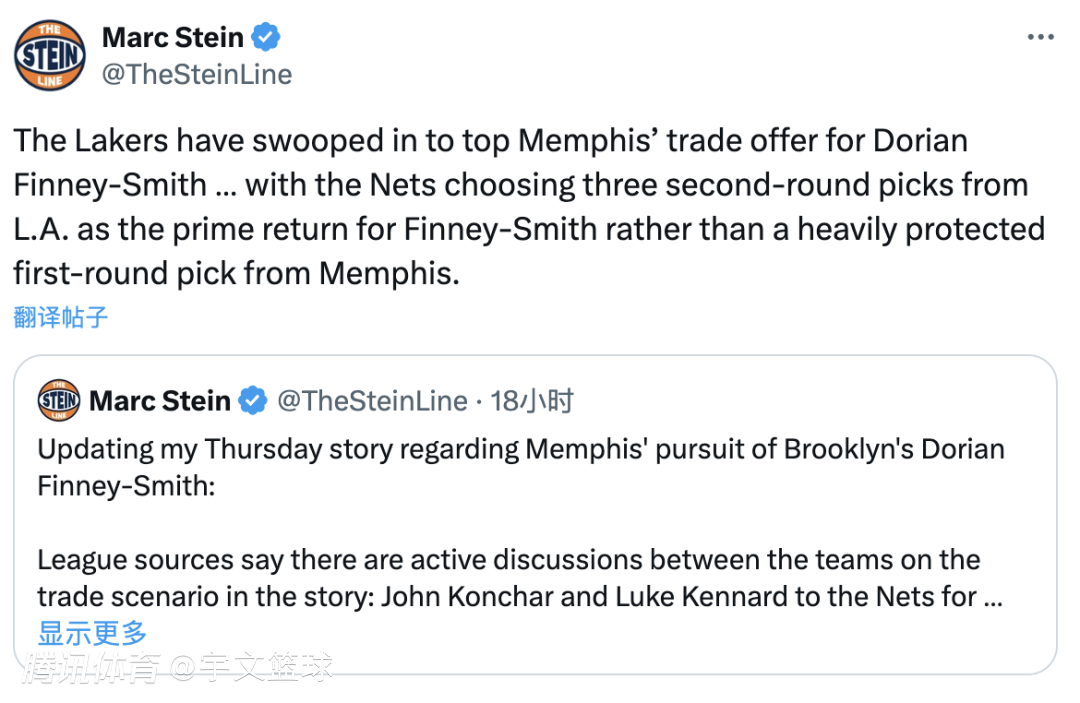 2024-12-30 06:30北京时间12月30日,据名记Shams透露,湖人用拉塞尔、刘易斯、3个次轮选秀权(27年、30年和31年),从篮网手中换来芬尼-史密斯和米尔顿,关于交易的更多细节陆续曝光。