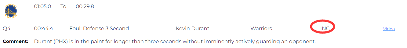 勇士vs太阳裁判报告:比尔关键犯规是错判 漏吹杜兰特防守3秒违例