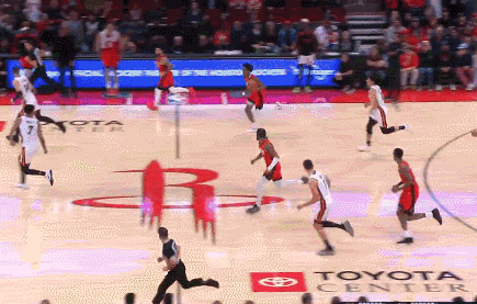 希罗撞了阿门一下,阿门拉希罗的球衣,虽然两人抱在一团,阿门摔倒了希罗。