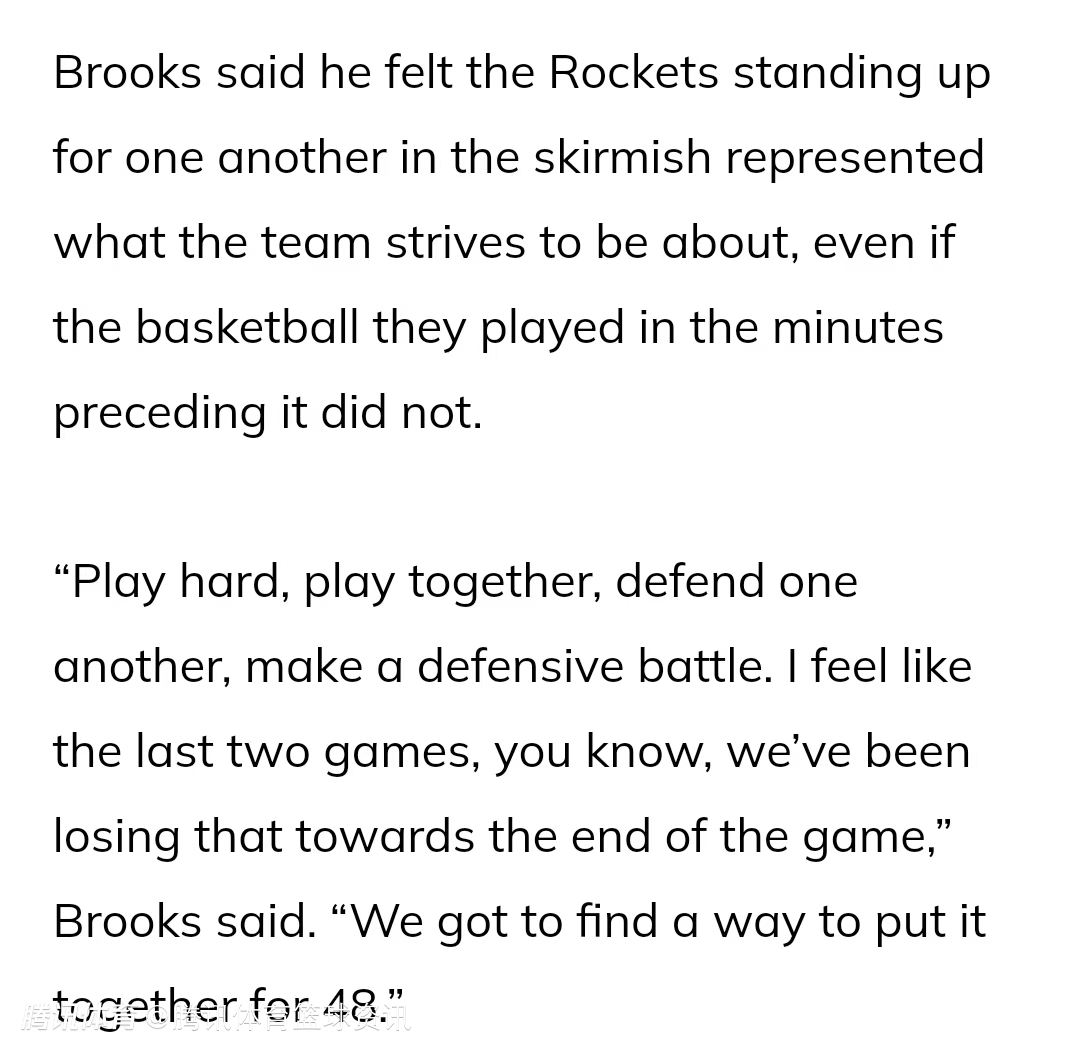 本场输给热火后,火箭也遭遇了两连败,上一场对阵森林狼的比赛中,火箭在比赛最后三分钟被对手打出15-2的进攻高潮,最终以112-113输给了对手。