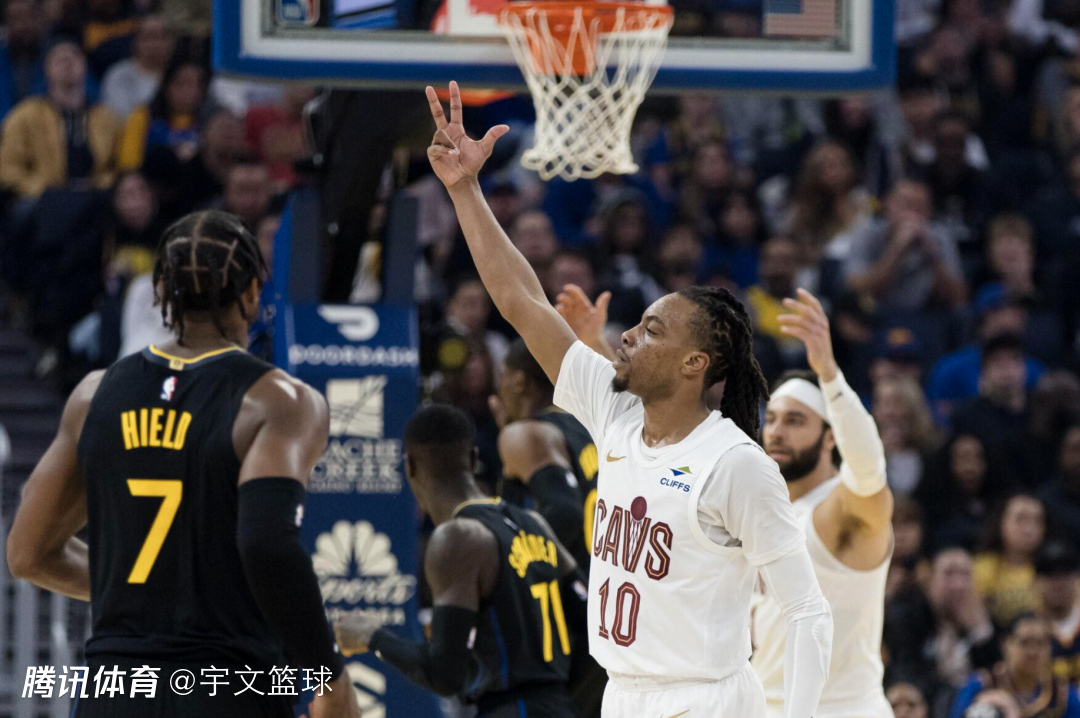 易边再战,TJD上篮打进2+1,米切尔连续飙进三分,骑士将分差来到双位数。骑士下起三分雨,打出一波20-2的疯狂进攻高潮,将领先优势扩大到20分以上。库明加连续走上罚球线4罚3中,艾伦勾手打进,勒维尔空切上篮,库里三分命中。艾伦空切暴扣,库明加和穆迪连得5分,米切尔三分命中,勇士连得6分缩小分差到10分以内。三节比赛结束,骑士83-65领先勇士。