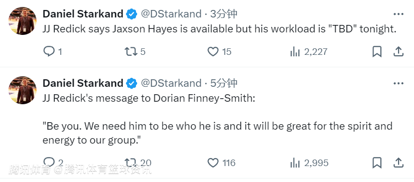 雷迪克:希望芬尼-史密斯能做自己 海耶斯今日战骑士将复出